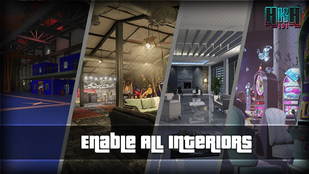 Enable All Interiors или EAI — это мод для включения всех интерьеров в GTA V, этот мод будет полноценной заменой следующих модов — Open All Interiors and Online Interiors. Открытые интерьеры Командных Пунктов (всё еще необходимо, если вы исполь...