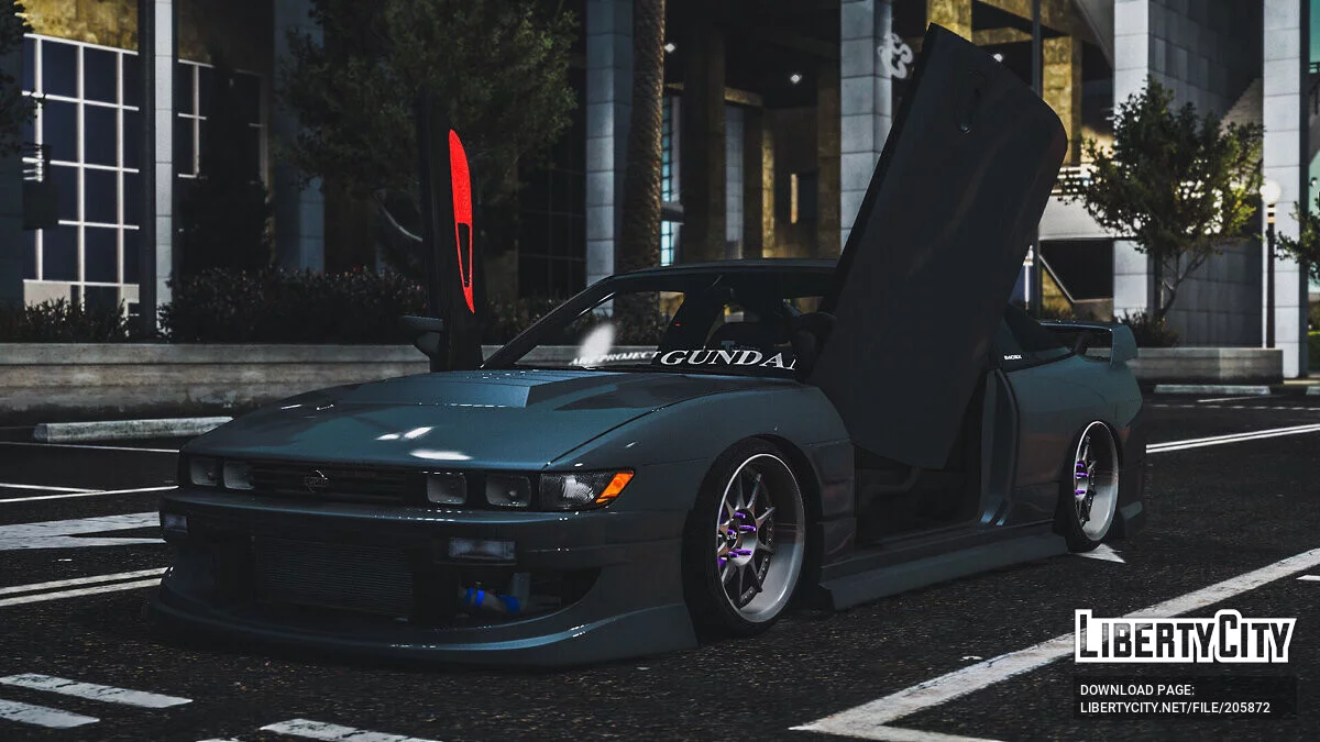 1993 Nissan 240SX Sileighty [Replace | Add-On | Extras] для GTA 5. Особенности: Модель HQ; Сменные колеса; Руки на руле; Реалистичные зеркала; Рабочие циферблаты; 3D движок; Разбиваемые окна; Двери-бабочки. Приятной игры. ...