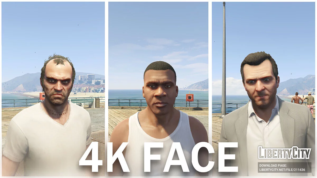 Этот мод улучшает текстуры голов главных персонажей Майкла , Френклина и Тревора в GTA 5, увеличивая их качество до высокодетализированных 4K. Теперь каждый персонаж будет выглядеть еще более реалистично, с высокой четкостью и деталями, что зна...
