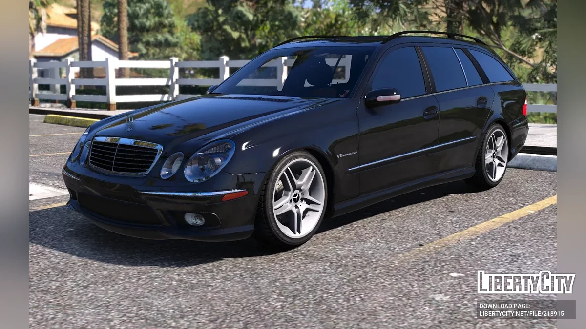 Mercedes-Benz E55 AMG Estate (S211) [Add-on | Sound] 1.0 для GTA 5. Особенности: Полностью укомплектованный салон, моторный отсек; Настраиваемый звук двигателя M113k; Настраиваемая управляемость с реалистичной максимальной скоростью (198 мил...