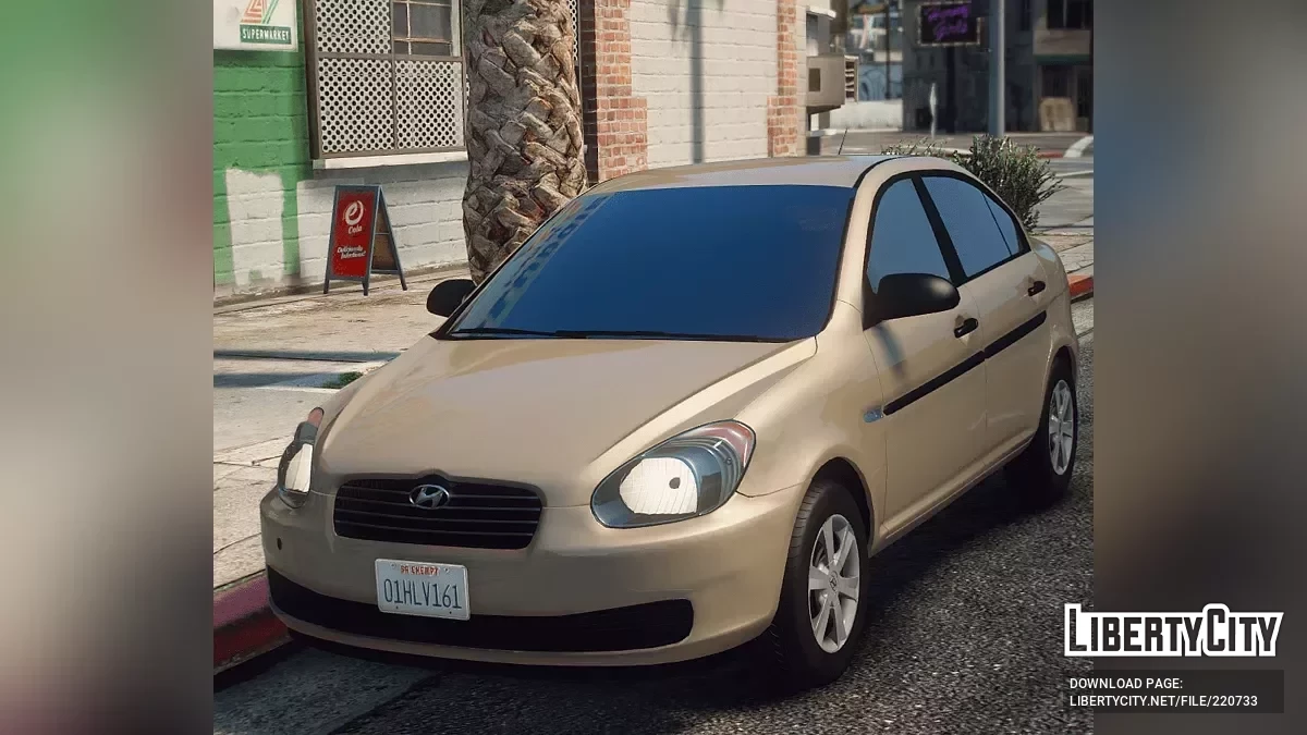 Hyundai Accent 2006 [Replace / FiveM] 1.0 для GTA 5. Передняя часть: Передняя часть автомобиля выделяется характерной решеткой радиатора, которая имеет хромированное обрамление и логотип Hyundai в центре. Фары имеют округлую форму и располагаются...