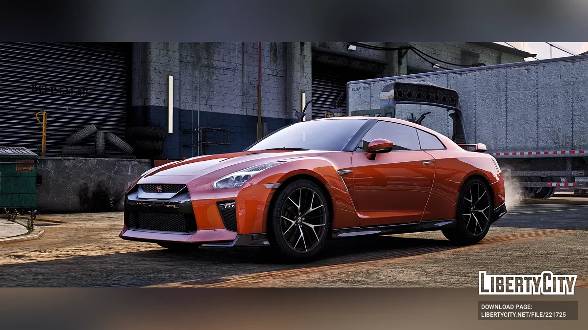 Nissan GTR для GTA 5. Передняя часть автомобиля доминирует крупная решетка радиатора, которая придает кузову мощный вид. Узкие и острые фары с яркой светодиодной подсветкой придают автомобилю хищный облик. Задняя часть также обладает выразител...