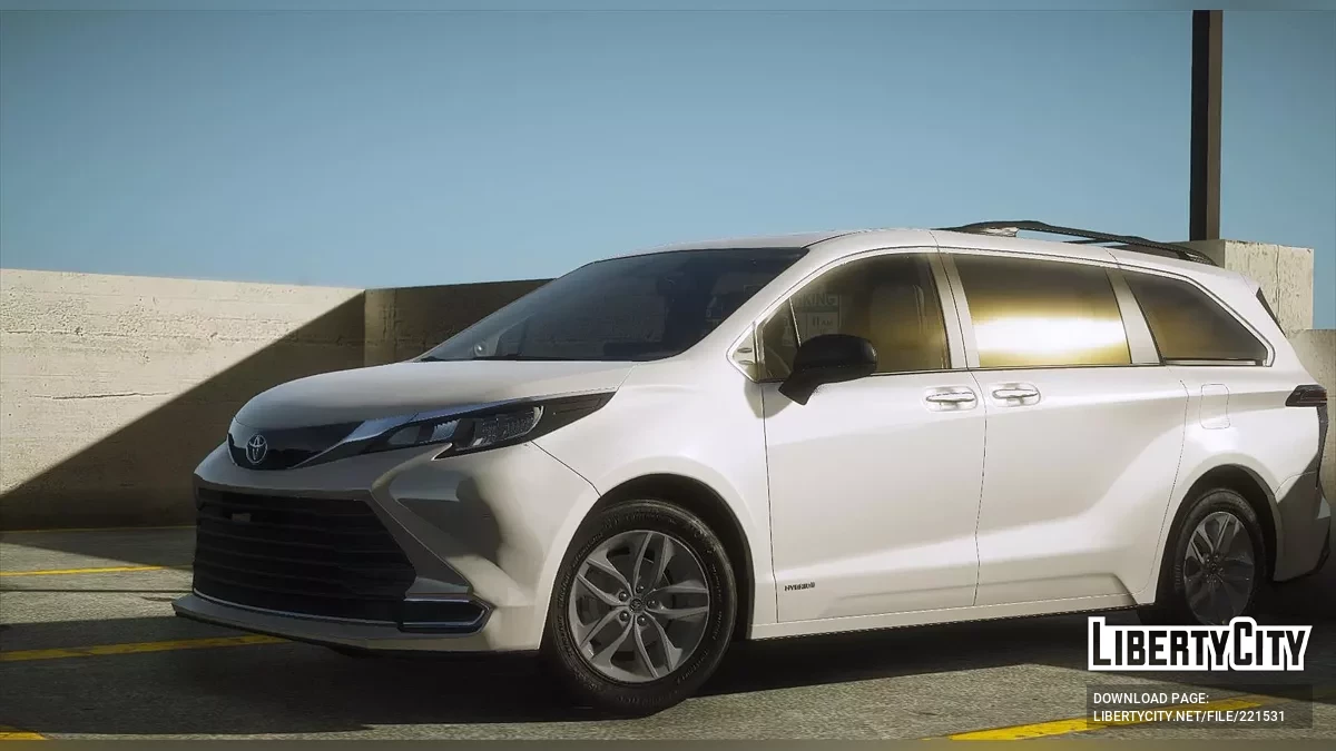 2022 Toyota Sienna XLE [Replace/Add-On] 1.0 Toyota Sienna XLE 2022 года — это 4-е поколение минивэна от Toyota. Эта комплектация XLE является более распространенной, с комфортной ездой, 18-дюймовыми колесными дисками, люком, особым цветовым решени...