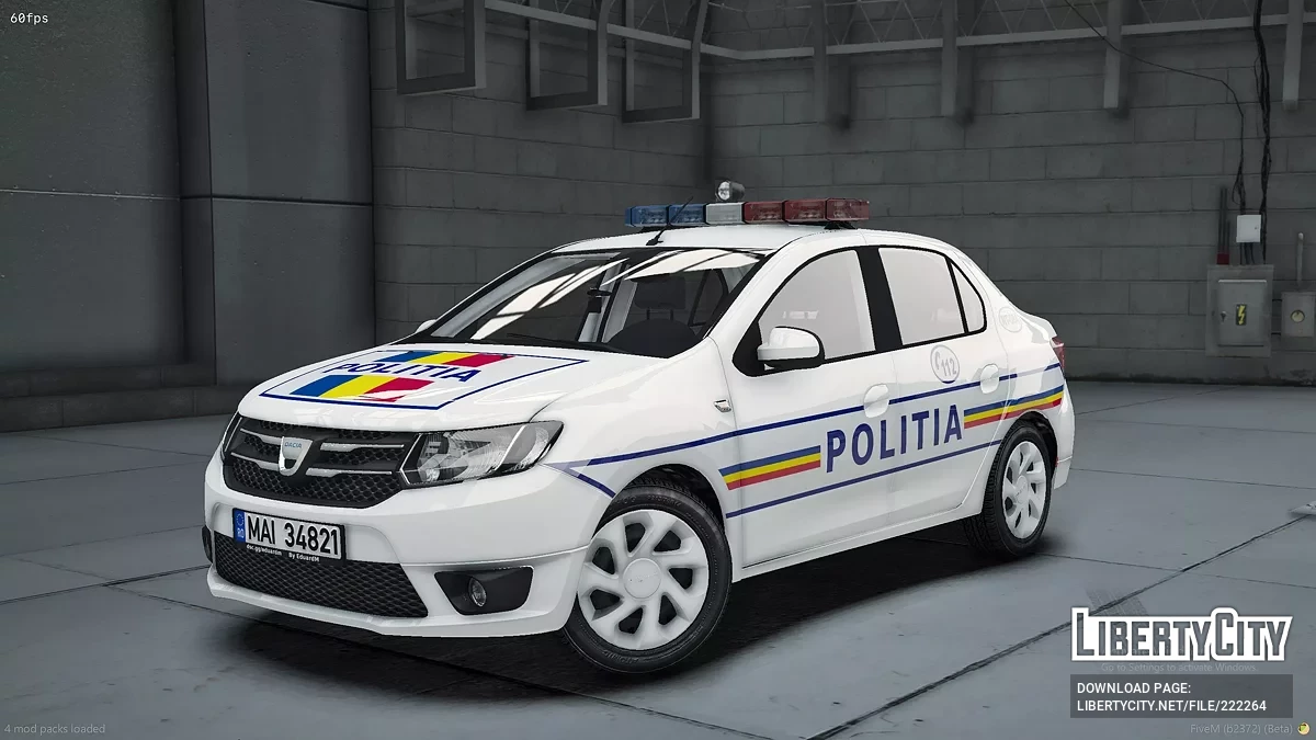 2013 Dacia Logan Politia Romana для GTA 5. Dacia Logan 2013 года, используемая румынской полицией, имеет простой и функциональный дизайн. Автомобиль окрашен в белый цвет с синими и красными акцентами. На капоте и дверях нанесена надпись "POLITIA" с...