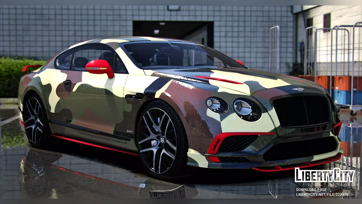 Bentley Continental Supersports Coupe для GTA 5. Передняя часть автомобиля оснащена большой черной решеткой радиатора и выразительными круглыми фарами, что придает ему внушительный и роскошный вид. Аэродинамические элементы подчеркивают спортивны...