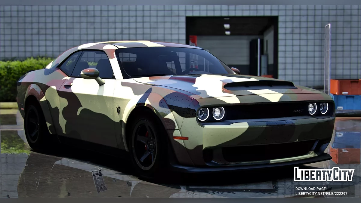 Dodge Challenger SRT для GTA 5. Кузов: Кузов Dodge Challenger SRT имеет массивные и мускулистые формы, что придает автомобилю агрессивный и внушительный вид. Дизайн вдохновлён классическими мускулкарами, что делает его узнаваемым и привлекательны...