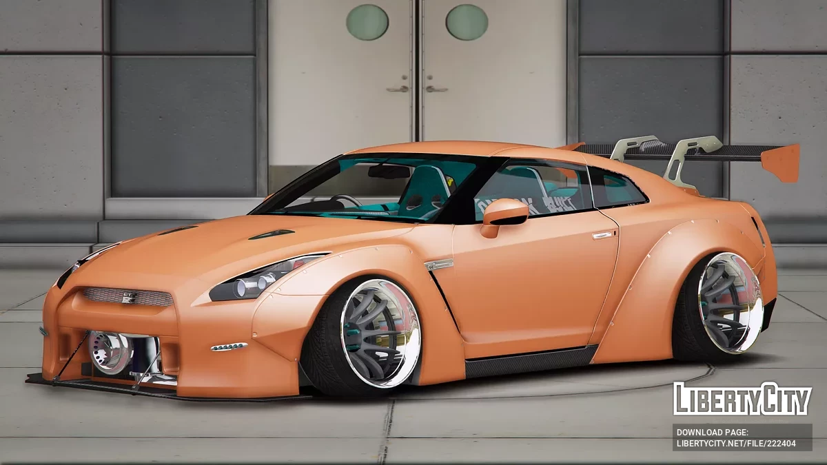 Nissan GTR R35 Custom Turbo Liberty Walk для GTA 5. Кузовные обвесы : Liberty Walk известен своими широкими кузовными обвесами, которые значительно увеличивают ширину автомобиля. Это придает GT-R более мощный и спортивный вид. Низкий профиль ...