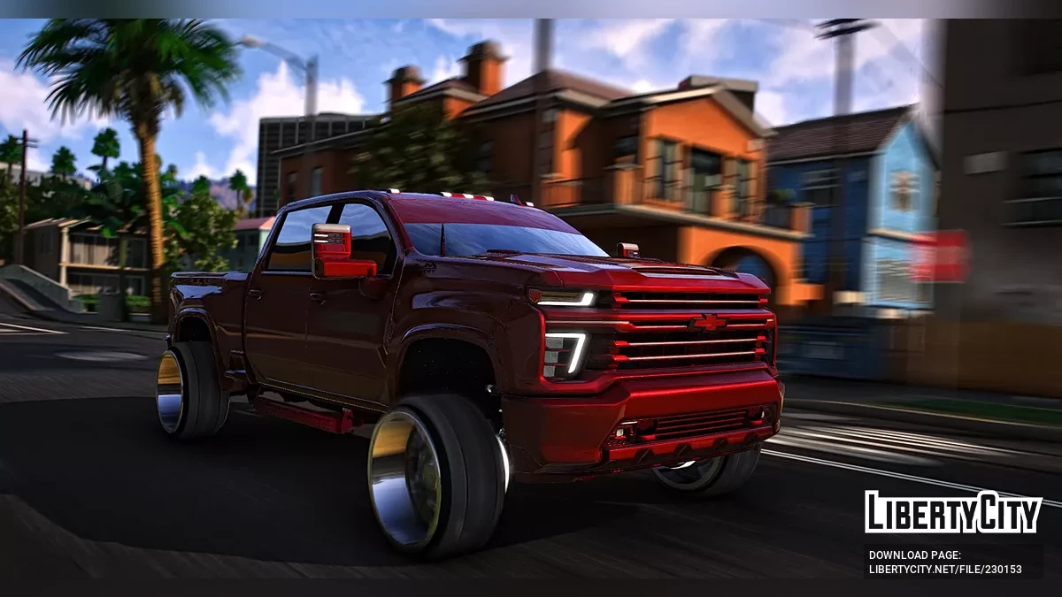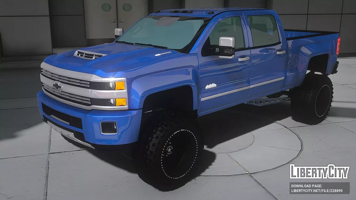 Chevrolet Silverado 3500HD High Country для GTA 5. Chevrolet Silverado 3500HD High Country — это мощный и современный пикап, сочетающий в себе брутальность и премиальный стиль. Передняя часть автомобиля выделяется массивной решеткой радиатора с фир...