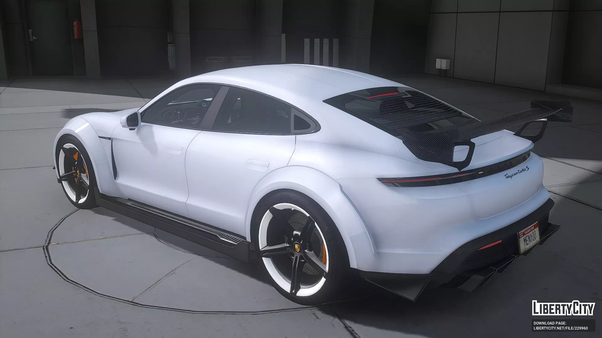 - Эмблема Taycan Turbo S и аккуратный номерной знак завершают современный внешний вид электрокара.