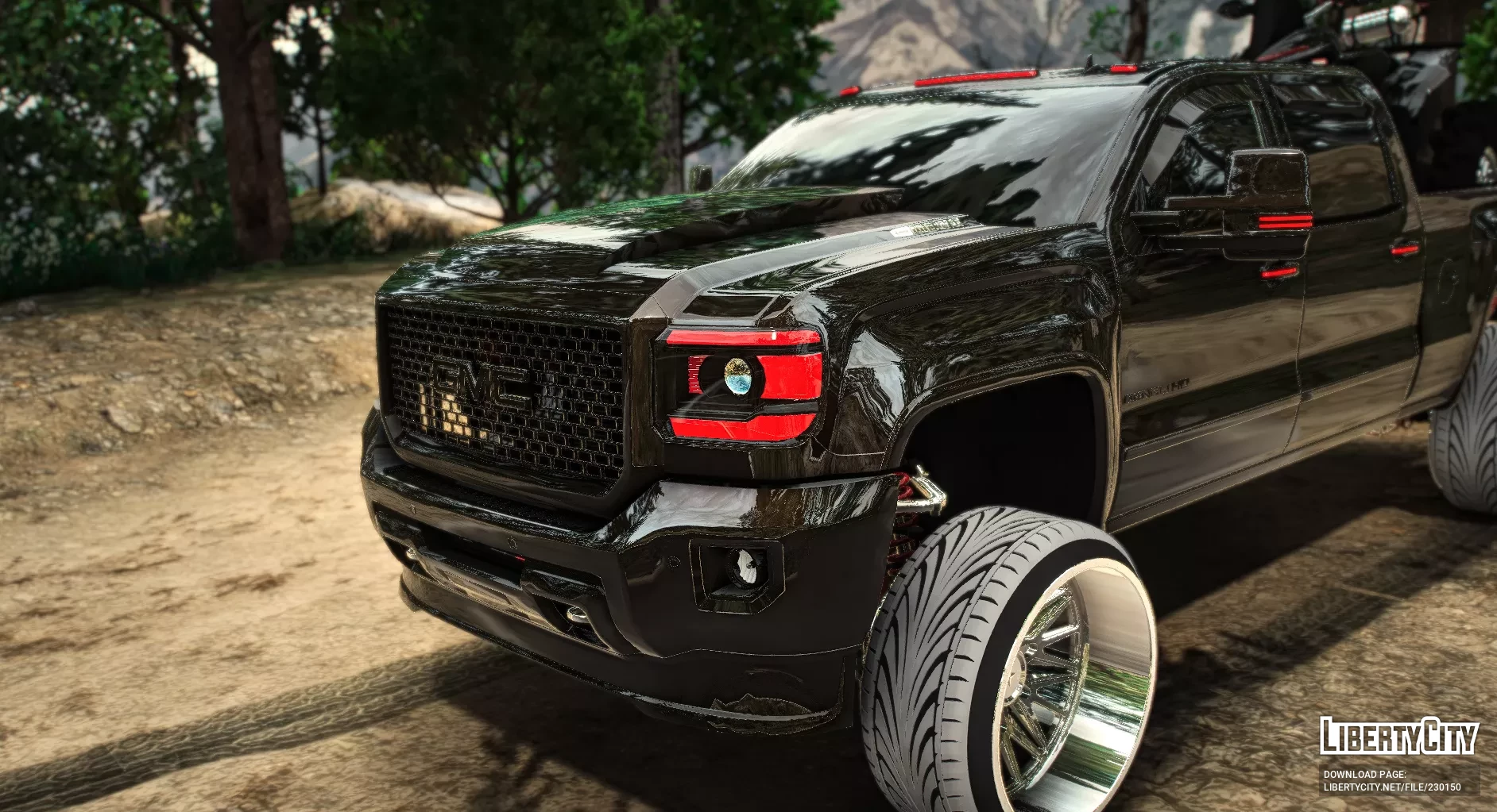 GMC Sierra 2500 Denali HD для GTA 5. GMC Sierra 2500 Denali HD — это массивный и внушительный пикап с агрессивным и современным дизайном. Внешний вид автомобиля выделяется огромной хромированной решёткой радиатора с логотипом GMC, массивными светод...
