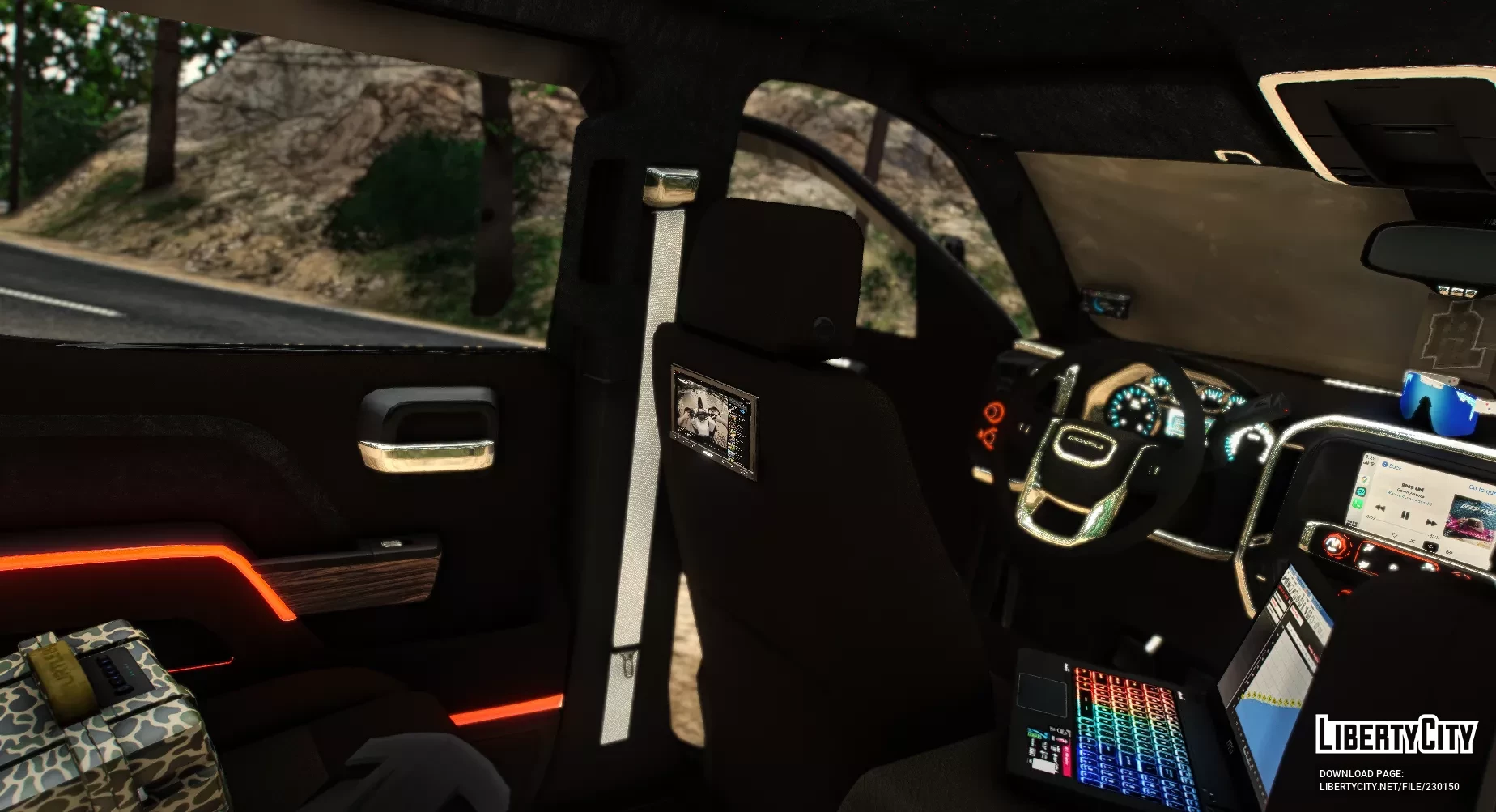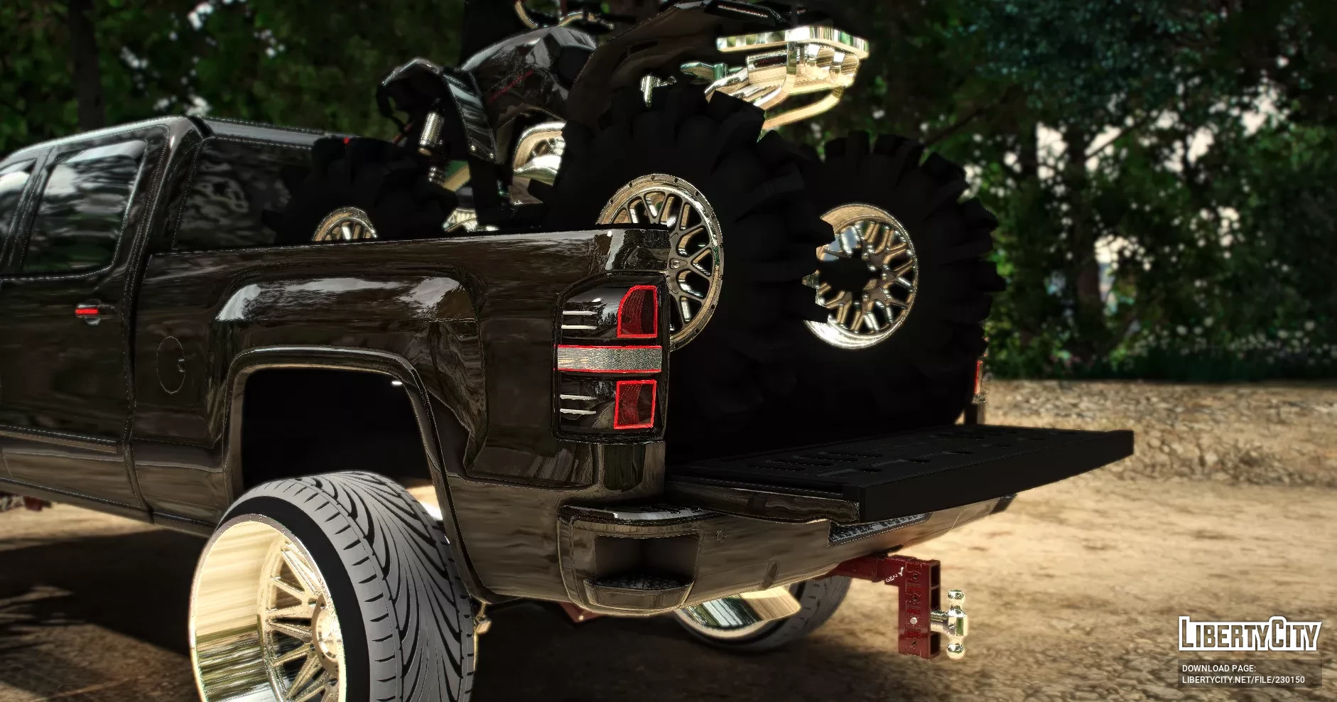 GMC Sierra Denali для GTA 5. GMC Sierra Denali — это премиальный пикап, который выделяется своим мощным и элегантным дизайном. GMC Sierra Denali имеет массивный и прочный кузов, который подчеркивает его внедорожные качества и статус. Обтекаемые ли...