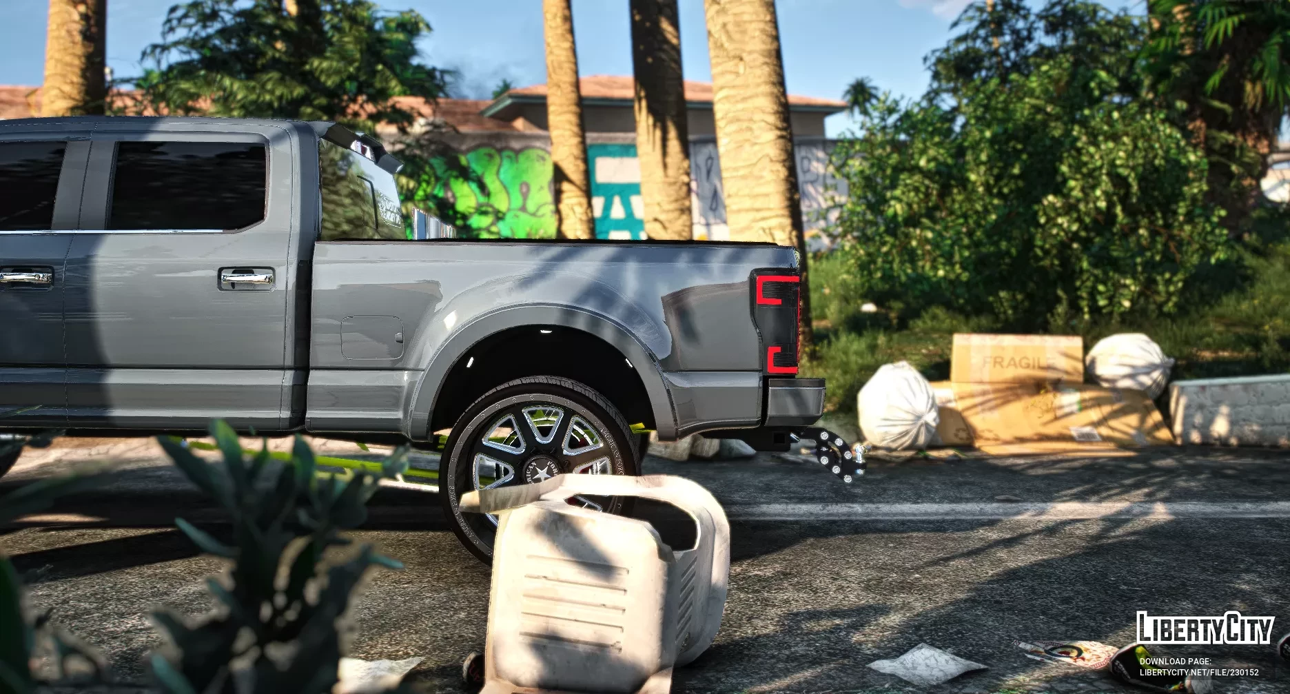 Ford Super Duty F-350 Platinum для GTA 5. Ford Super Duty F-350 Platinum — это массивный и внушительный пикап, выделяющийся своим агрессивным и современным дизайном. На передней части установлен мощный металлический кенгурятник, который защищает ре...