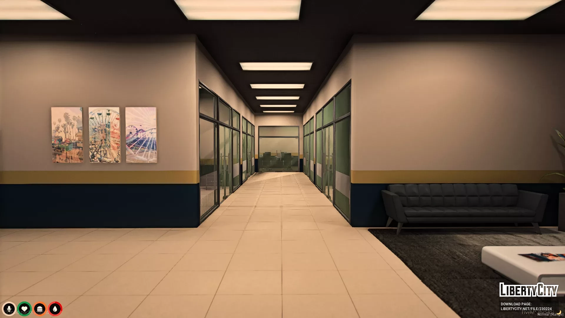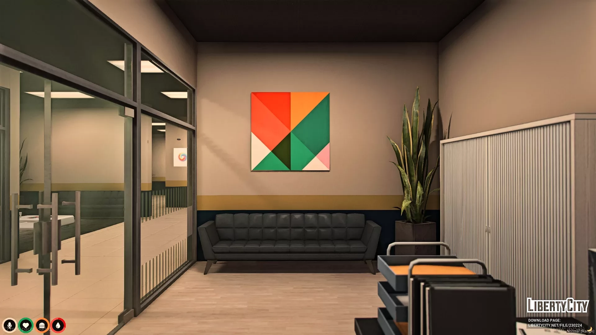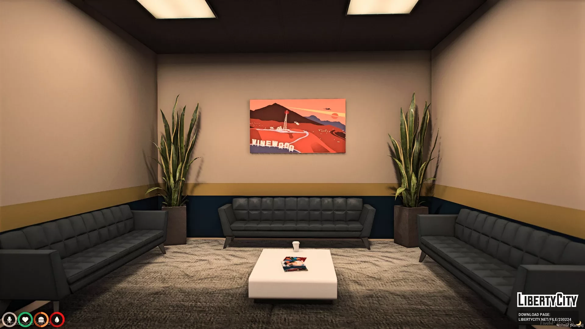 Здание Echo Rock представляет собой одноэтажное строение с фасадом, выполненным из светлого камня или бетона с вертикальными рифлёными элементами. Центральная часть фасада выделяется тёмной вывеской с золотой надписью "ECHO ROCK INSURANCE & FINANCIAL SERVICES" и логотипом в виде горы на фоне солнца. Входная группа состоит из стеклянных дверей и больших окон с металлическими решётками. По обе стороны от входа расположены массивные колонны. Здание выглядит современно и аккуратно, хорошо вписывается в городской пейзаж, на фоне которого виднеются высотные здания и строительные краны. Рядом расположены другие коммерческие помещения и парковка, а также пальмы, придающие месту калифорнийский колорит.