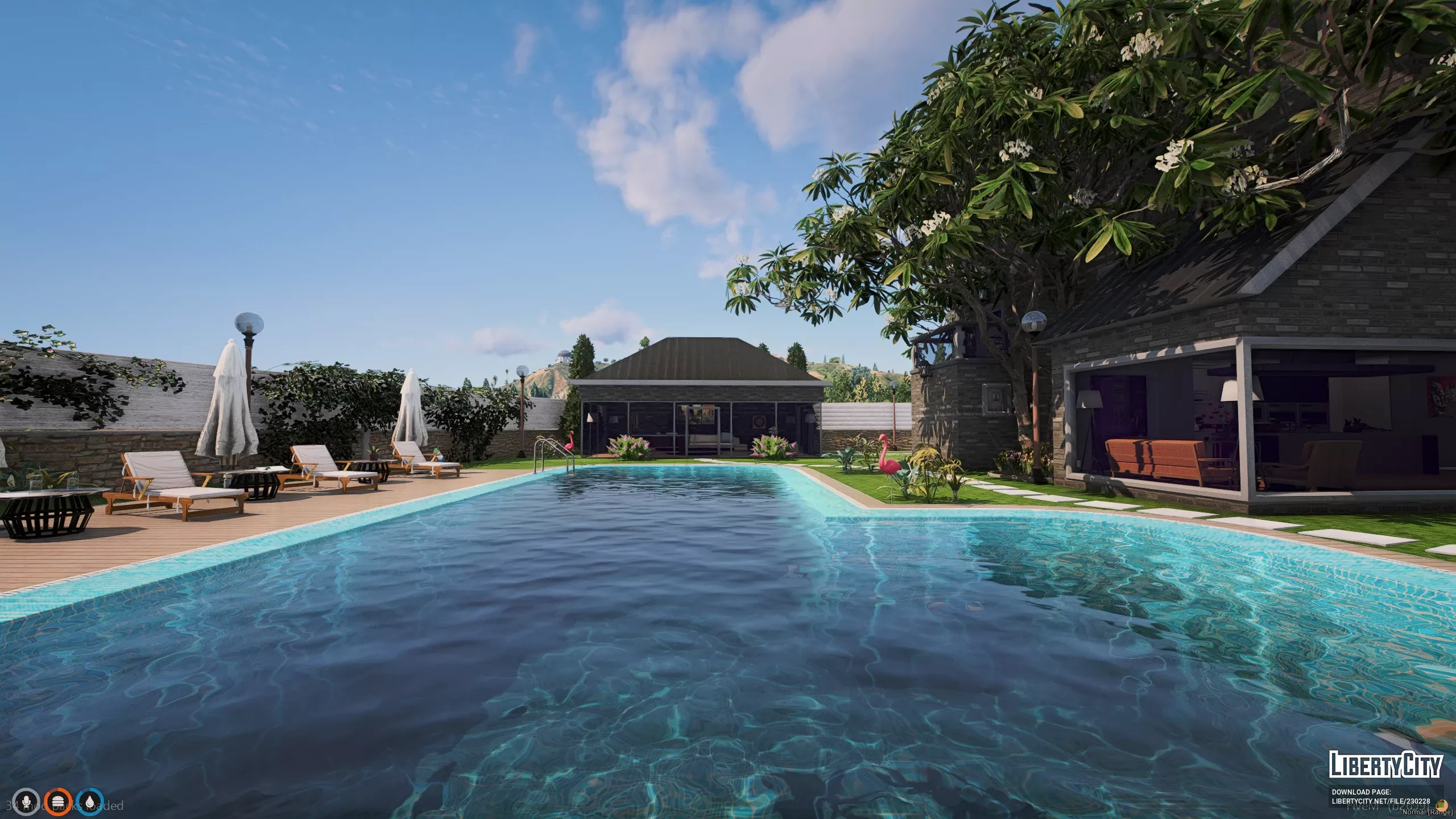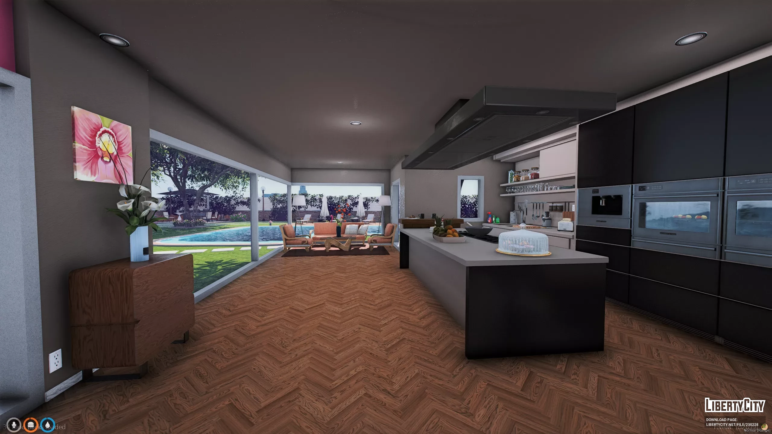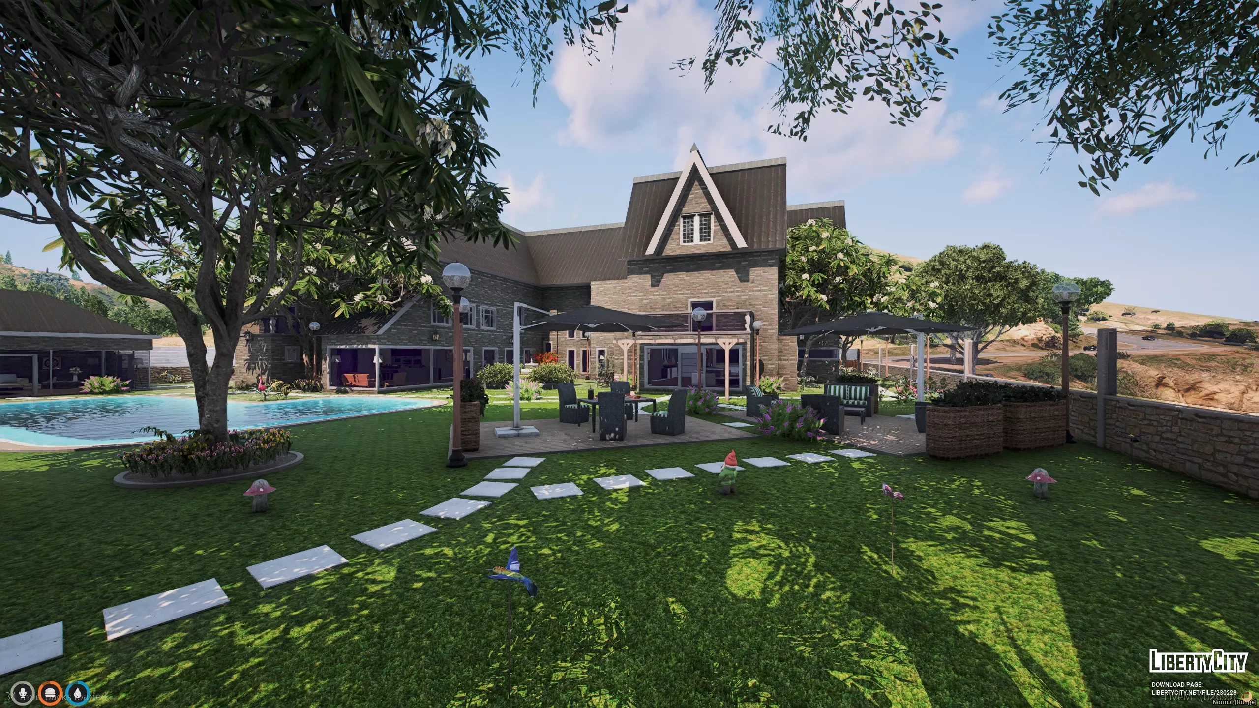 Majesty Mansion — это роскошный особняк, расположенный на возвышенности с панорамным видом на город. Внешне здание выполнено в современном стиле с элементами классики: массивная крыша с несколькими скатами, темный фасад и большие окна. Вокруг особняка разбит ухоженный двор с зелёными насаждениями и аккуратными кустарниками. Территория ограждена кованым забором с автоматическими воротами, а перед домом есть просторная парковка для автомобилей. Особняк окружён густыми деревьями, что создаёт атмосферу уединённости и приватности, несмотря на близость к городу.