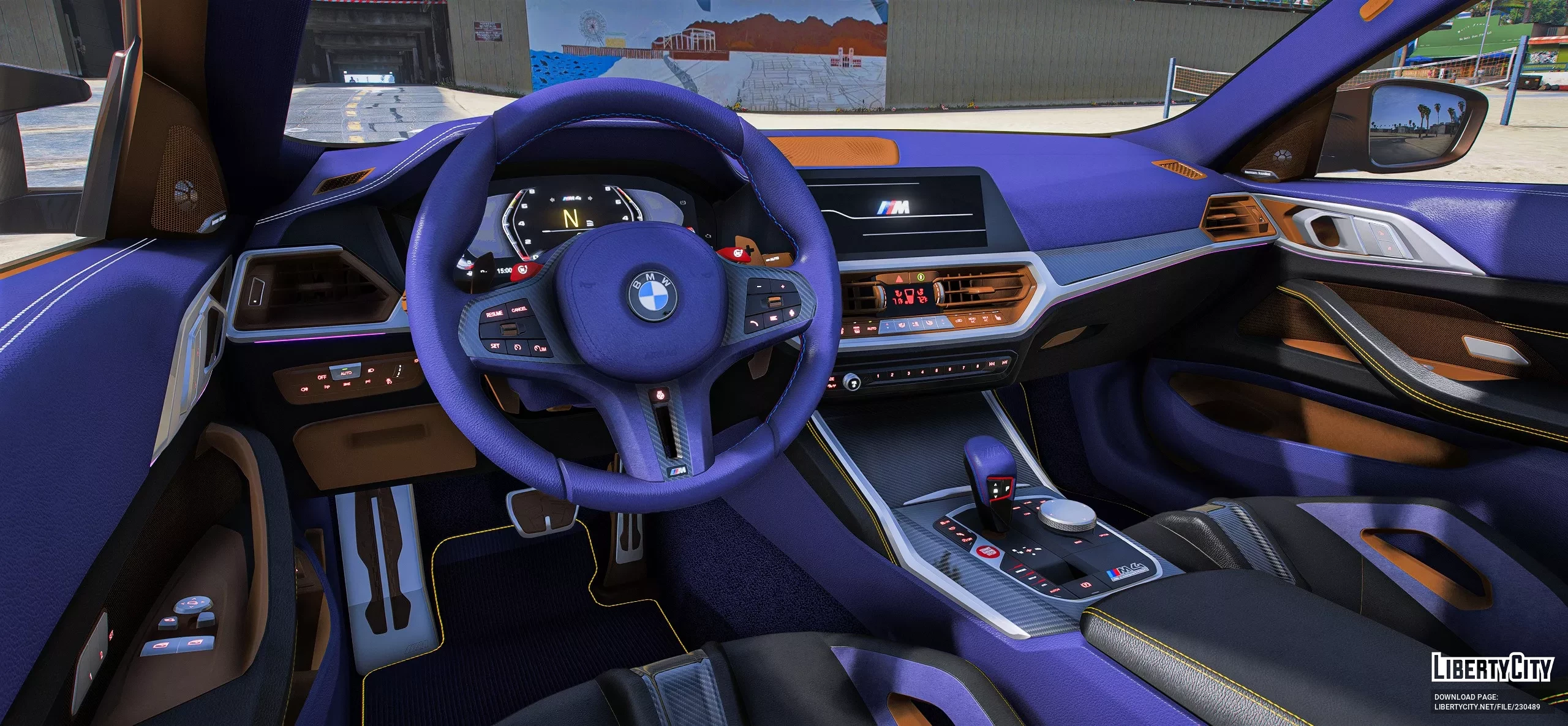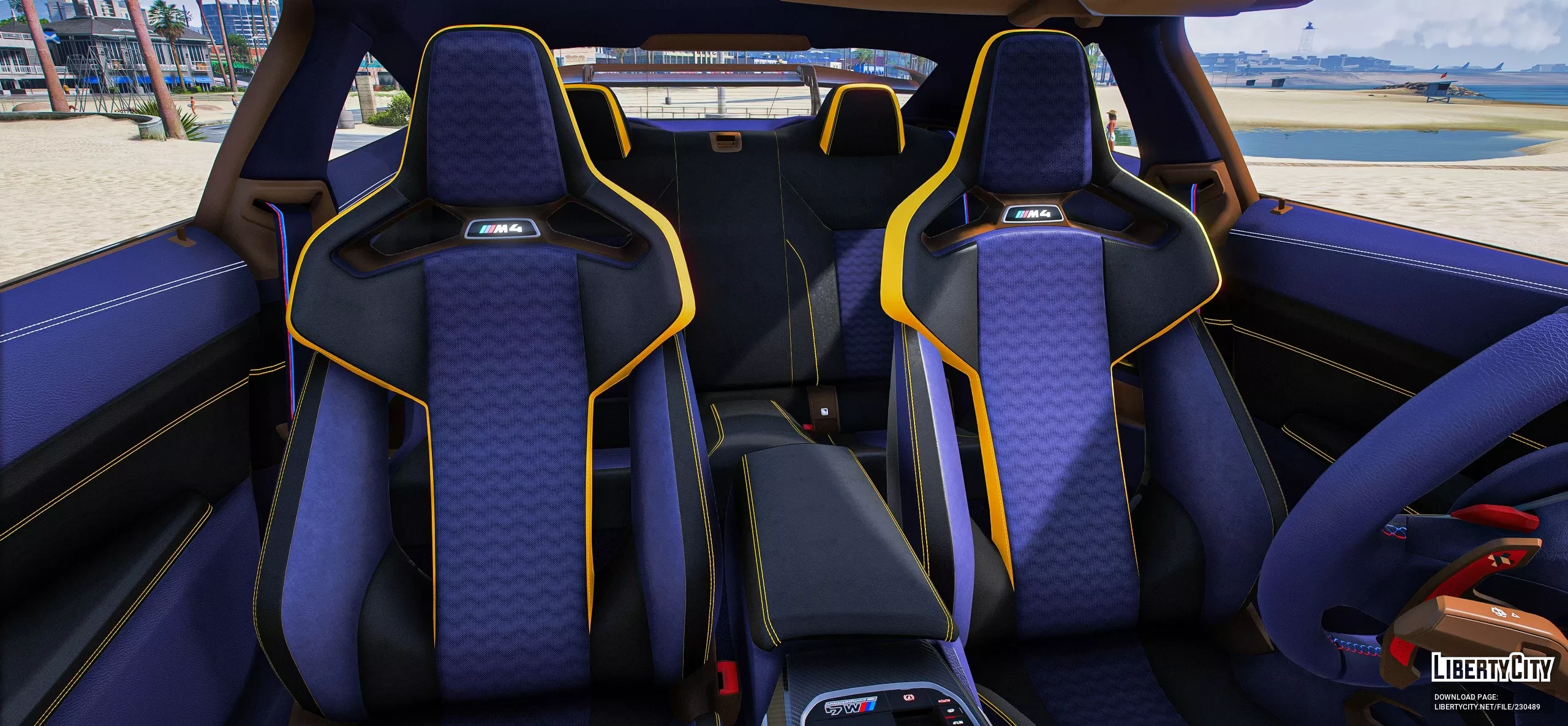 BMW M4 G82 2021 для GTA 5. Особенности: Рабочие циферблаты; Стрелки на рулевом колесе; Цвет 1: корпус; Цвет 2: Основное сиденье; Внутренняя покраска (benny); Цвет 5: сиденье; Цвет 6: Стежок. ...