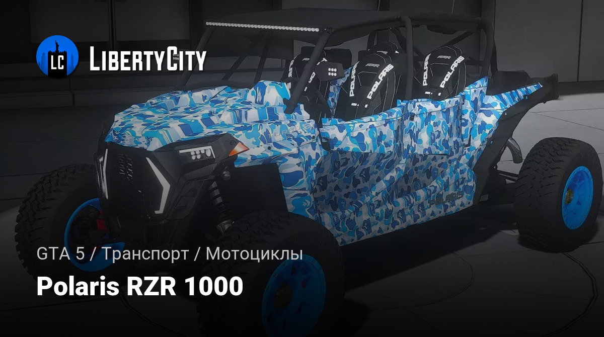 - Контрастная синяя камуфляжная окраска кузова выделяет Polaris RZR 1000 среди других внедорожников.