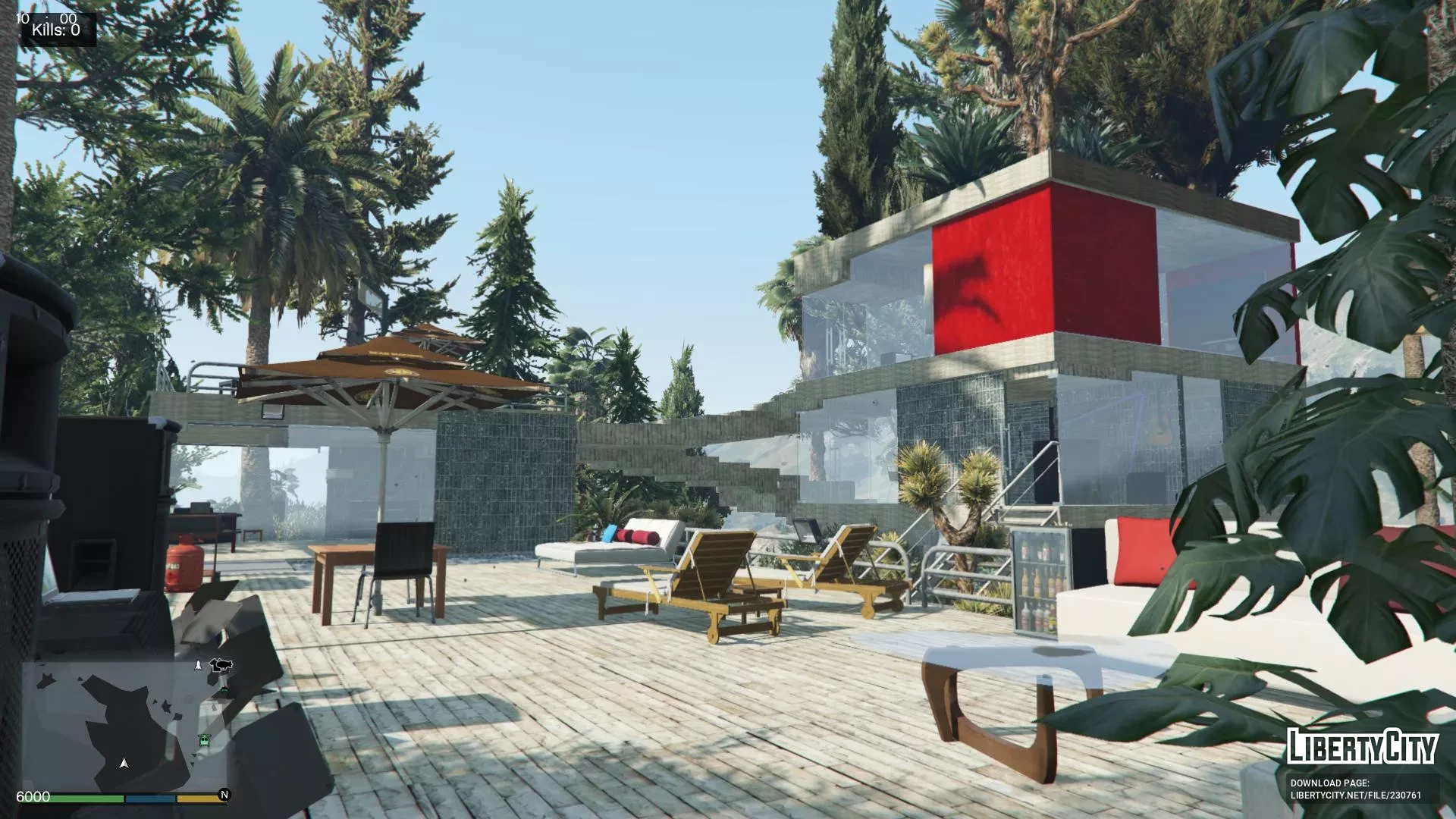 Мод добавляет в GTA 5 большую виллу на частном острове с двумя бассейнами, тренажёрным залом, баром, спальнями и зонами для вечеринок. Также на острове есть небольшие набережные и шезлонги для отдыха у воды. Идеально подходит для ролевых сцен, скриншотов или расслабленной игры.