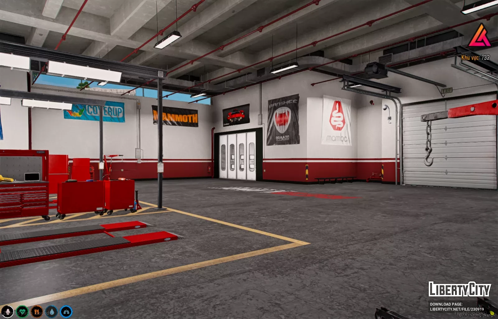 Redline Tuner Shop — это современное здание автосервиса, выполненное в стиле хай-тек. Фасад здания украшен горизонтальными полосами белого, красного и зелёного цветов, что придаёт ему узнаваемый и стильный вид. Основная часть здания облицована светлыми панелями с акцентами из тёмного камня в нижней части. На фасаде и воротах ярко выделяется логотип "REDLINE".