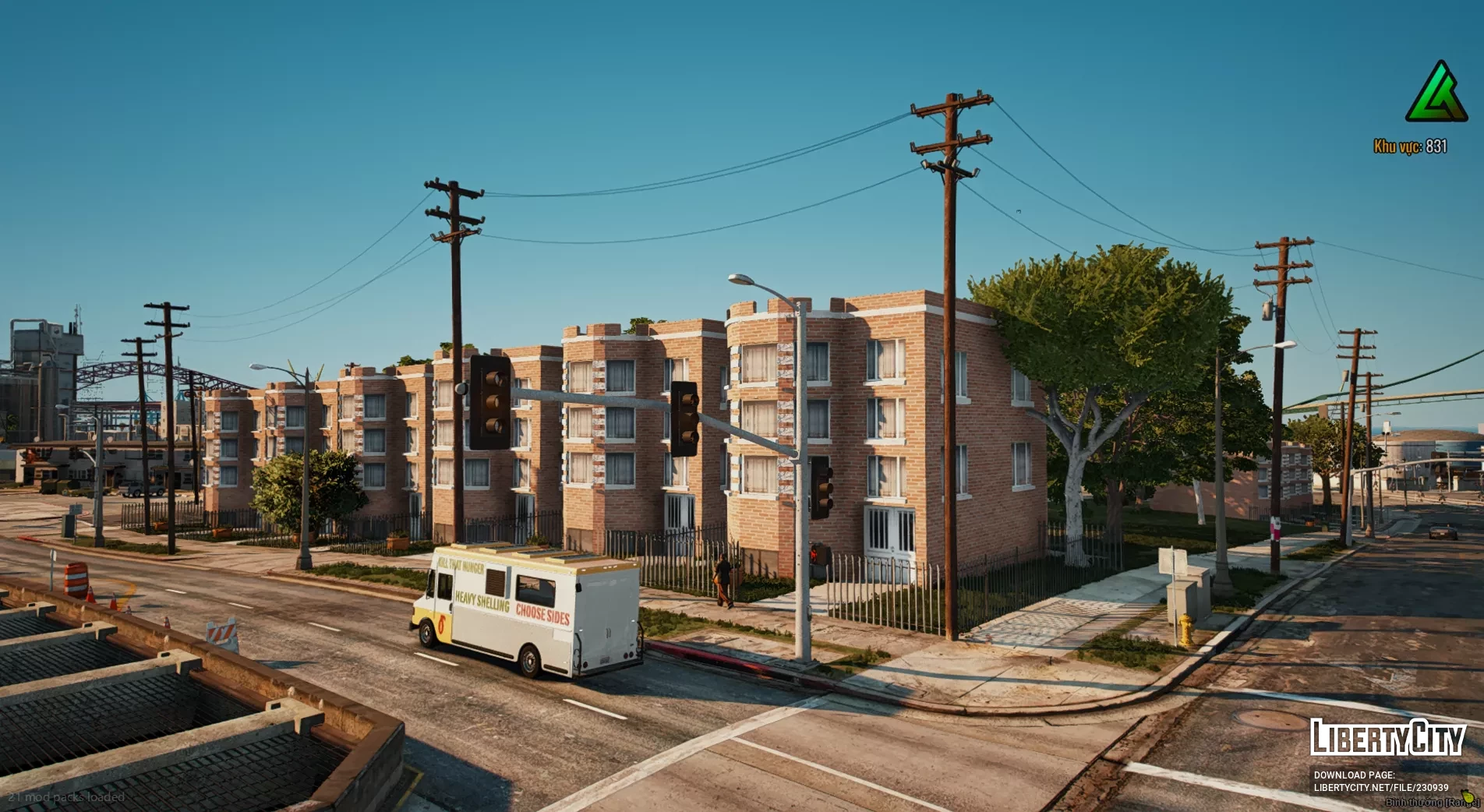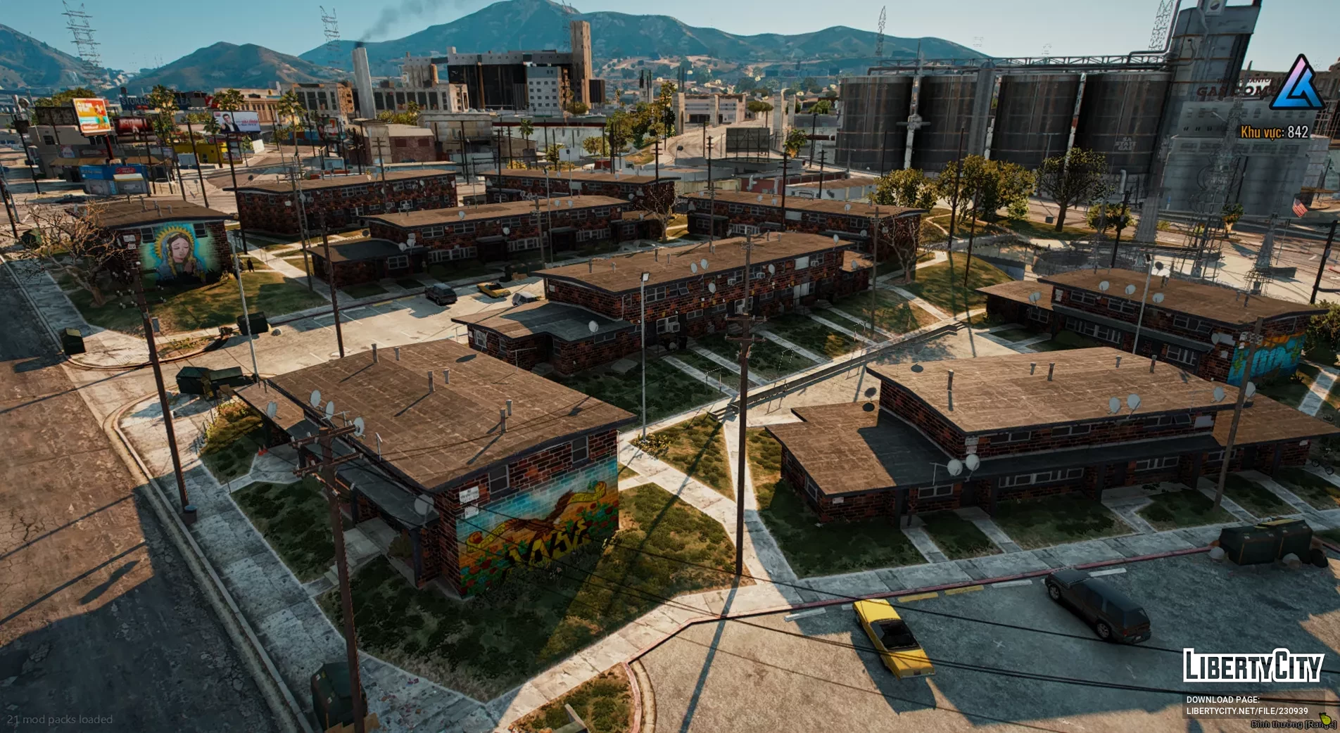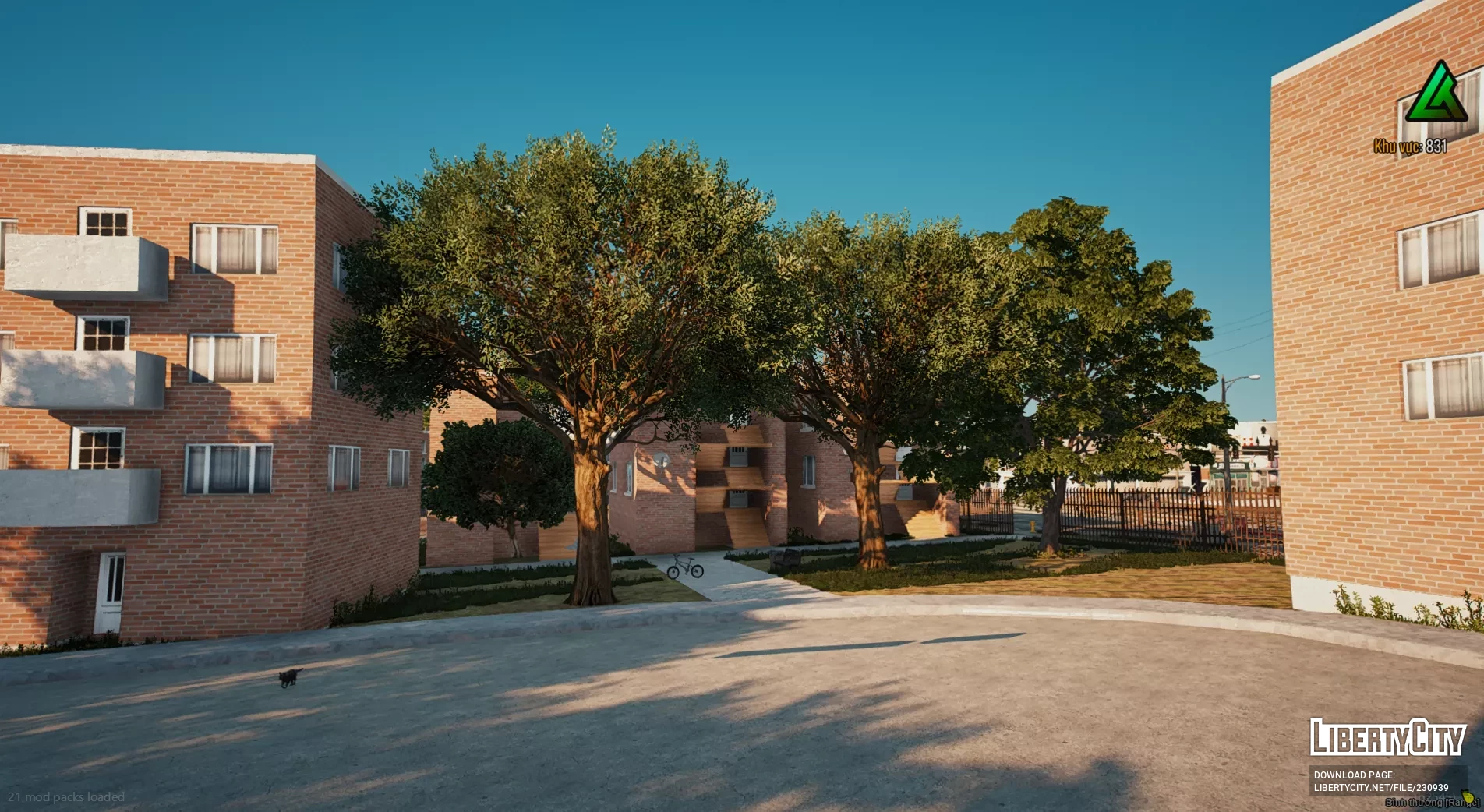 Chicago Rework — это модификация, которая изменяет внешний вид городской среды, делая её более похожей на районы Чикаго. На представленном изображении видно, что мод добавляет характерные для американских мегаполисов здания из кирпича с простыми геометрическими формами. Дома имеют несколько этажей, большие окна и минималистичный фасад. Вокруг расположены аккуратные газоны, тротуары и дорожки, а также классические элементы городской инфраструктуры — столбы, заборы и деревья. На заднем плане виднеется современный городской центр с высотными зданиями и небоскрёбами, что создаёт контраст между жилыми кварталами и деловой частью города.