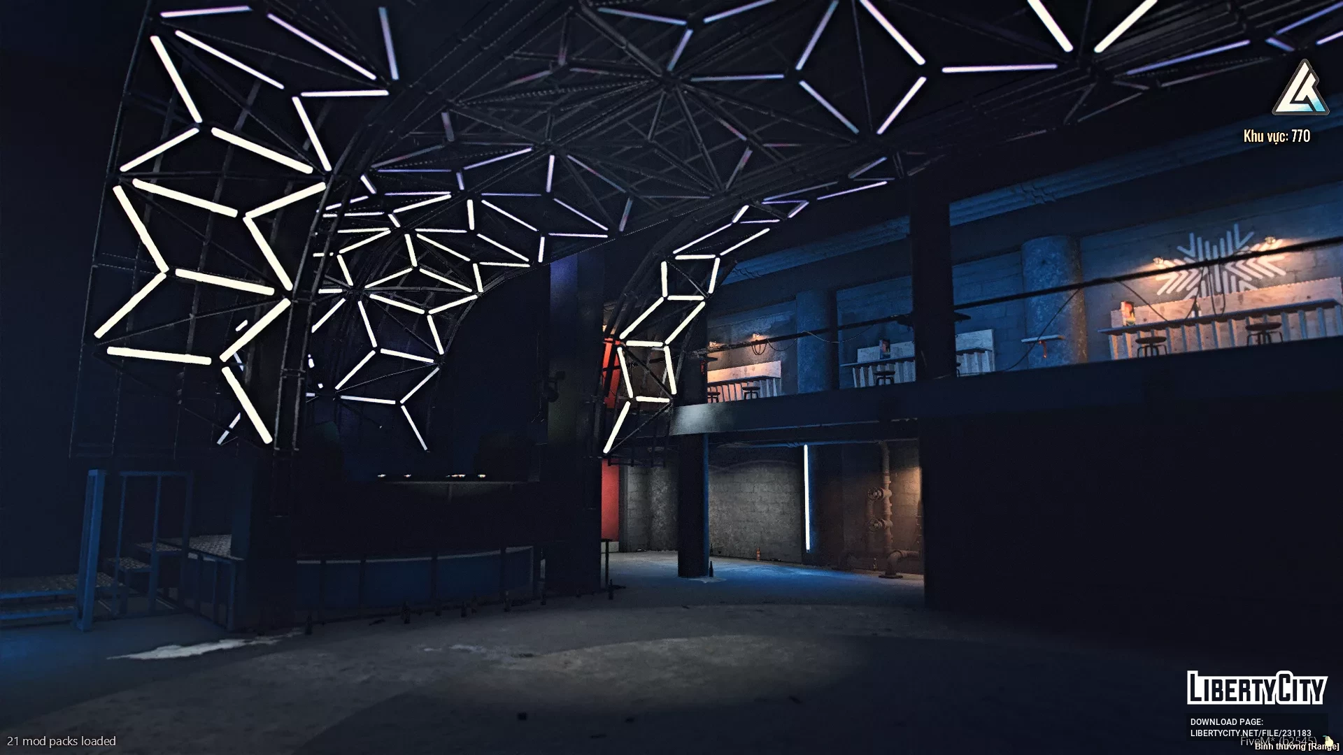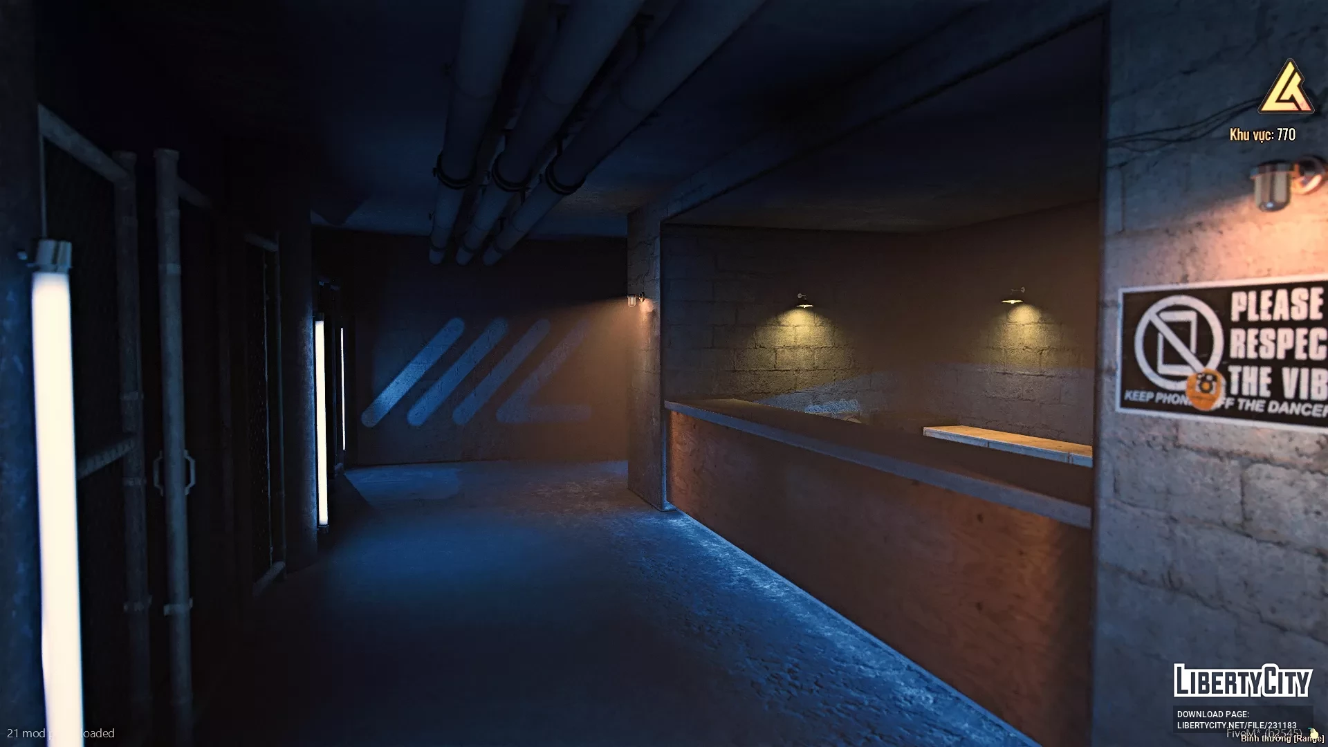 Secret Night Club расположен в промышленной зоне города, под массивной развязкой скоростных шоссе. Здание клуба выглядит неприметно и напоминает старый склад или заводское помещение с плоской крышей и серыми бетонными стенами. На крыше установлены вентиляционные блоки и рекламный щит, который отвлекает внимание от настоящего назначения здания.