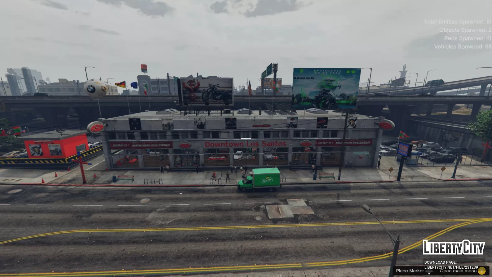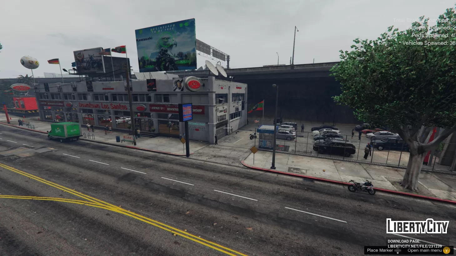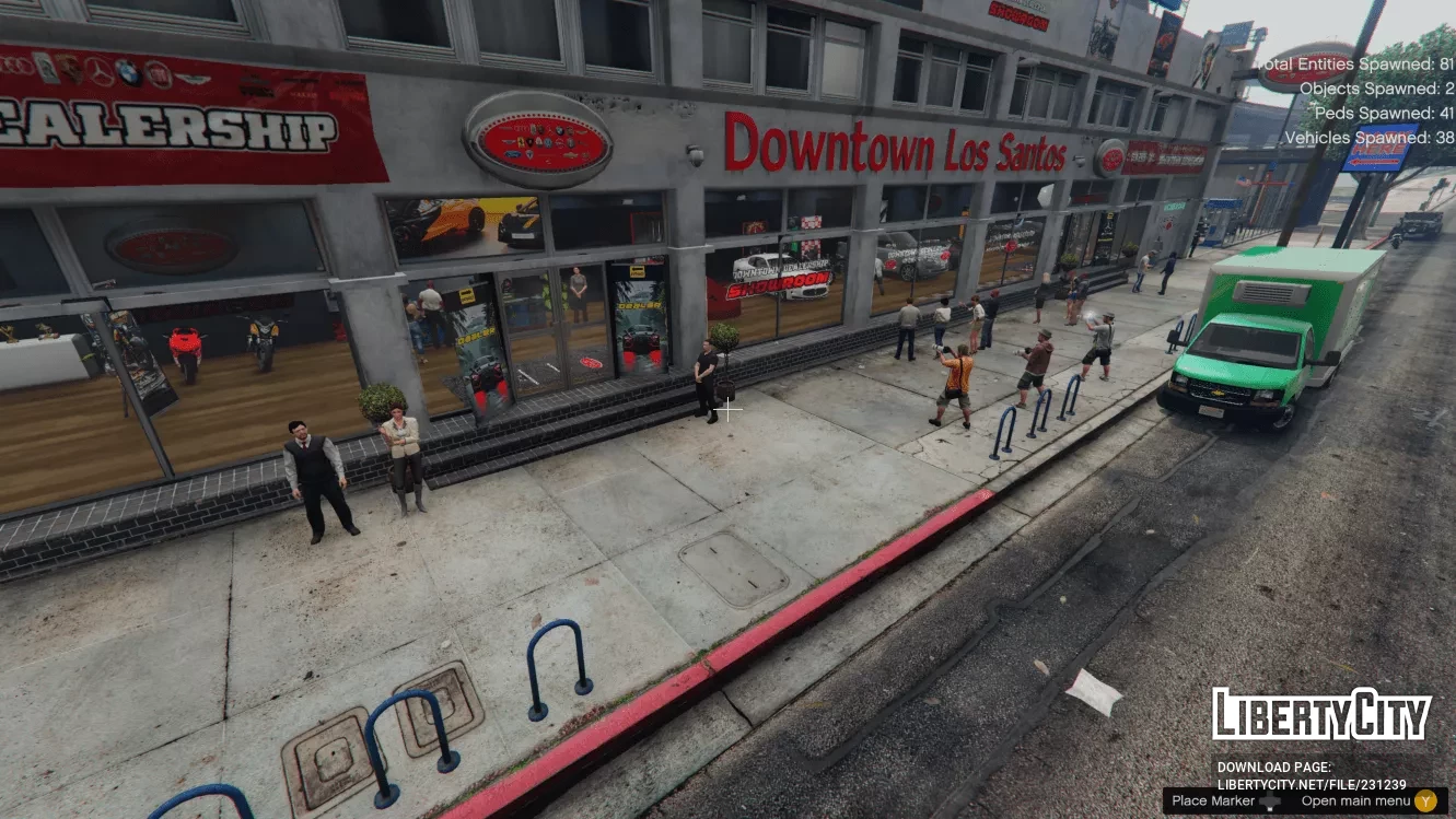 В архиве вы найдёте DLC автосалона, который находится внутри файла OIV (установка производится автоматически), а также файлы для menyooStuff/Spooner, которые генерируют транспорт и пешеходов.