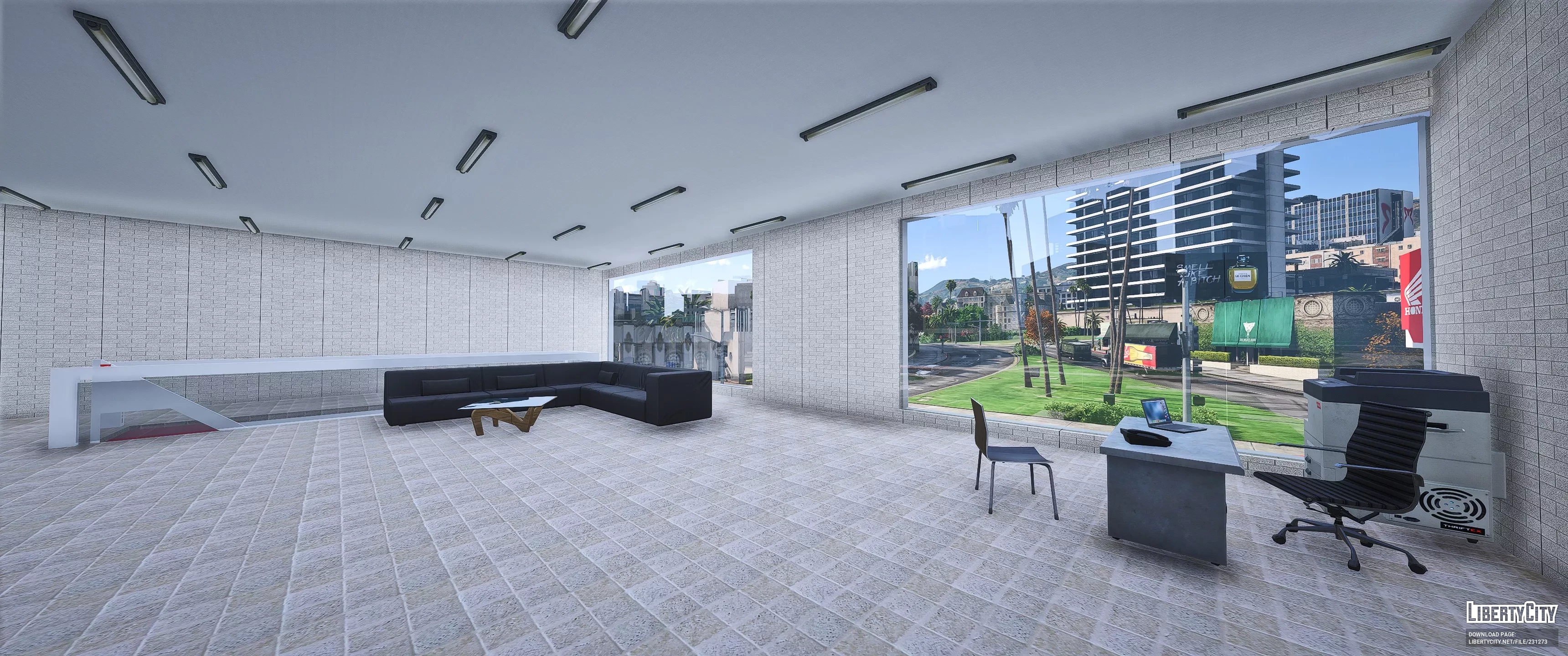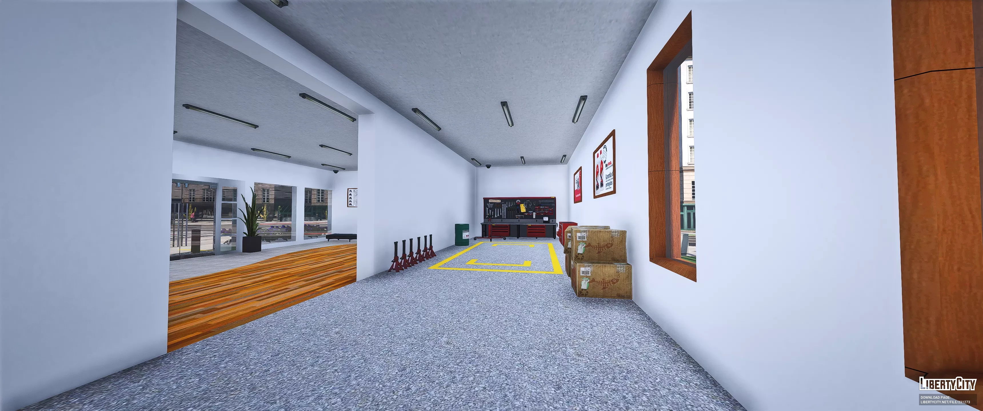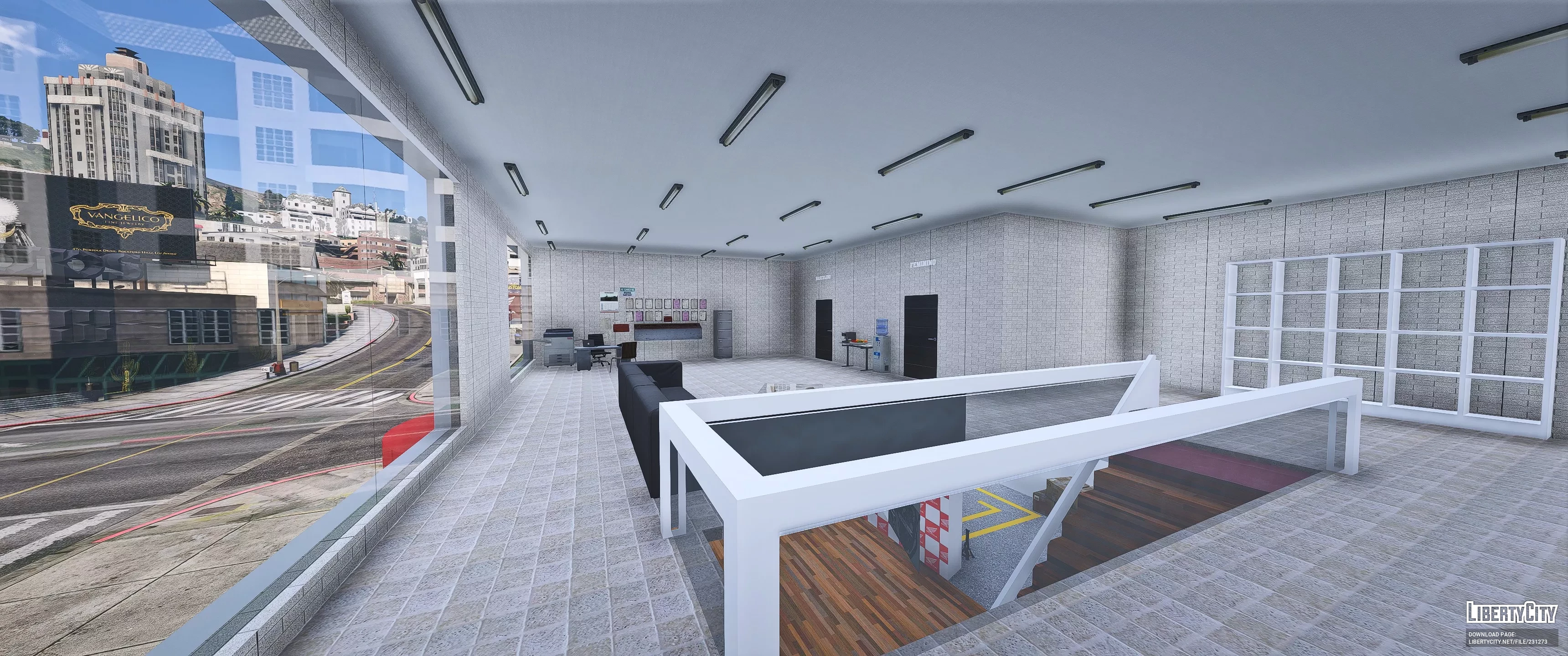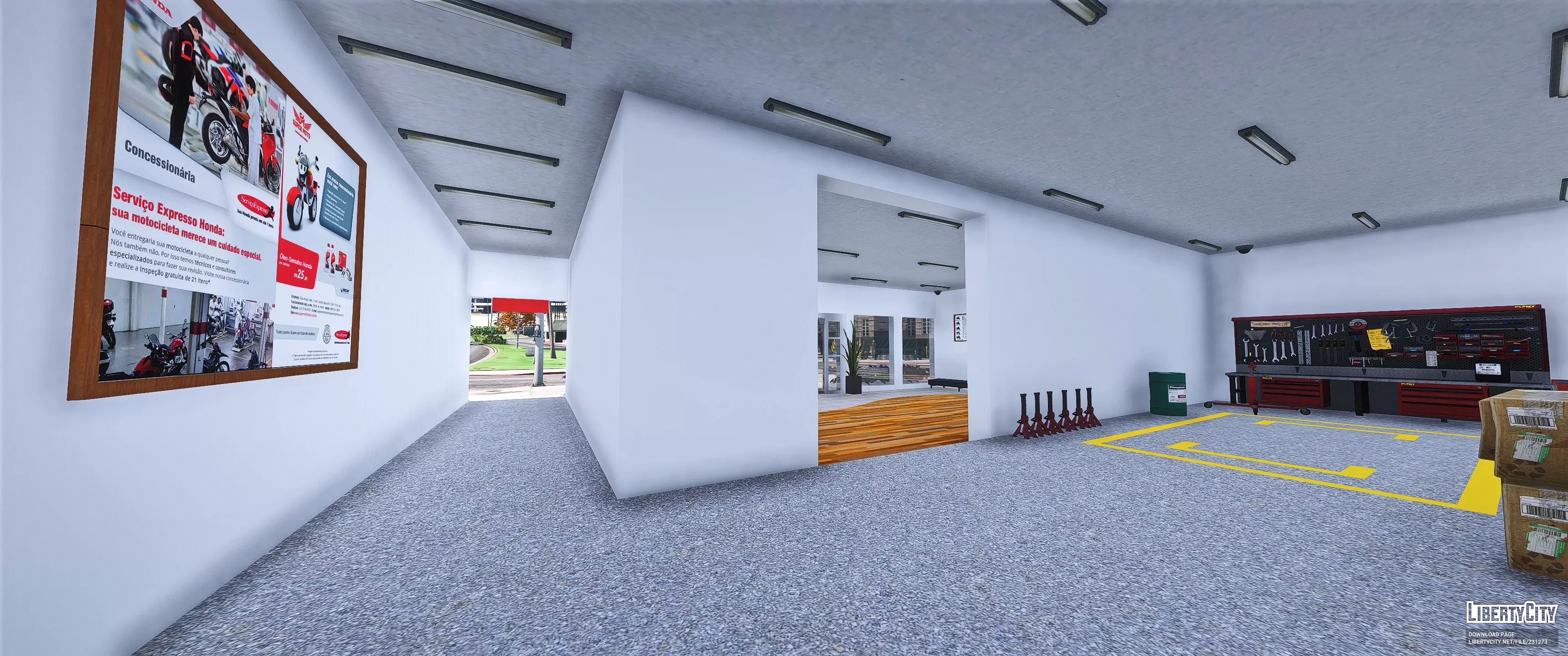 Здание автосалона выполнено в современном стиле и окрашено в белый цвет с яркими красными акцентами. На фасаде второго этажа размещён крупный логотип Honda на красной панели, что делает здание легко узнаваемым. Входная группа выделена красным козырьком, а по обе стороны от входа установлены стеклянные двери и большие витринные окна, через которые виден интерьер салона. По периметру здания высажены декоративные цветы в клумбах, что добавляет уюта и привлекательности. Здание расположено на углу улицы, окружено зелёными газонами и аккуратными тротуарами. Вокруг растут деревья с яркой листвой, а рядом находятся другие здания в классическом стиле.