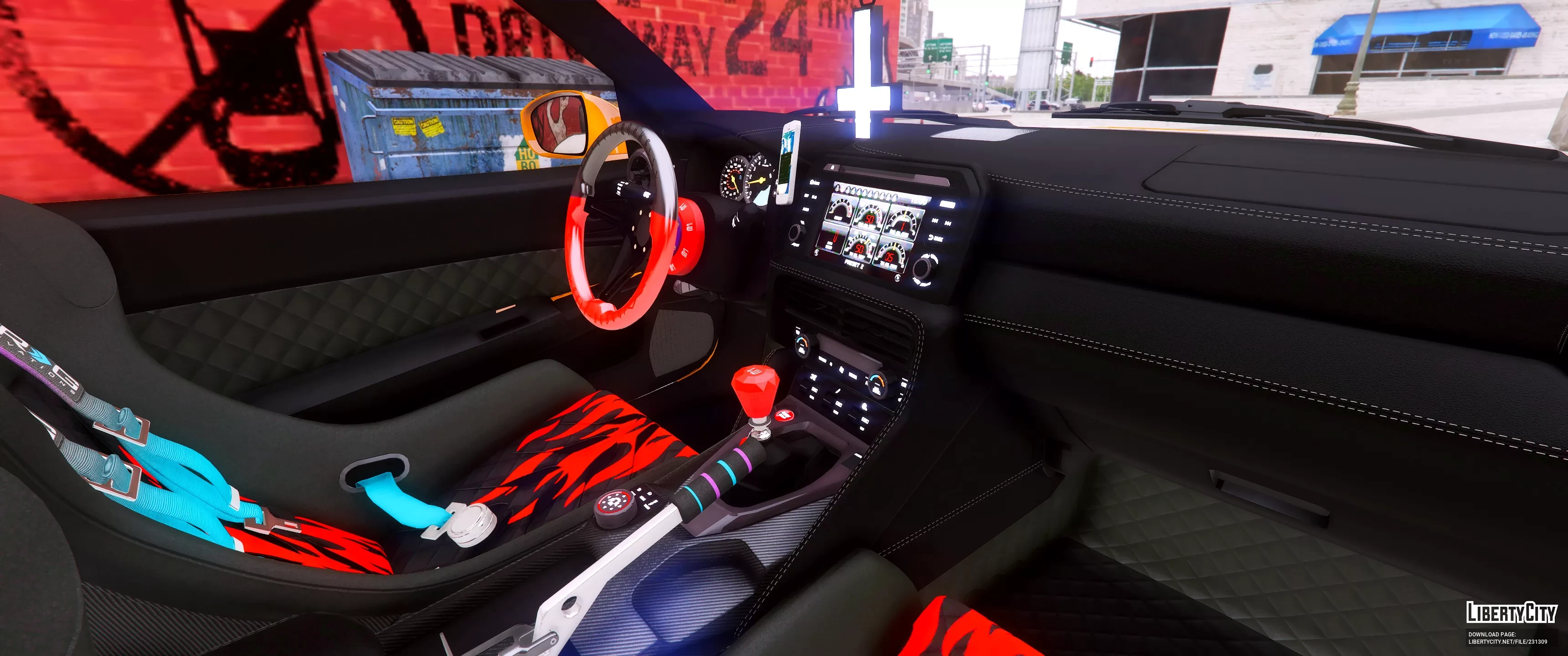 Салон автомобиля оборудован спортивными сиденьями BRIDE, что также намекает на его дрифт-направленность. Сзади установлен массивный спойлер, усиливающий аэродинамику и подчёркивающий агрессивный облик машины.