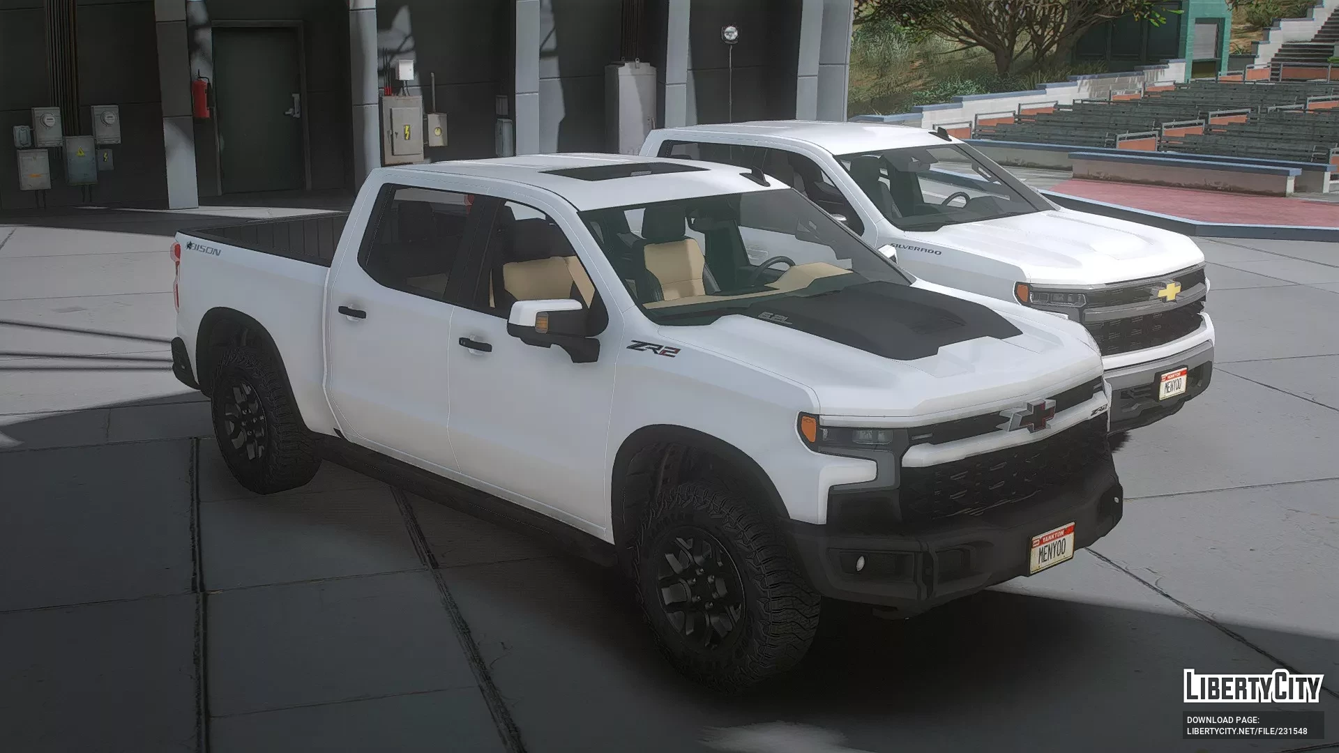 2023 Chevrolet Silverado Bison ZR2 для GTA 5. Кузов и форма: Silverado Bison ZR2 обладает мускулистым дизайном с широкими колесными арками, которые акцентируют его внедорожные способности. Кузов имеет четкие и строгие линии, что придает ему сол...
