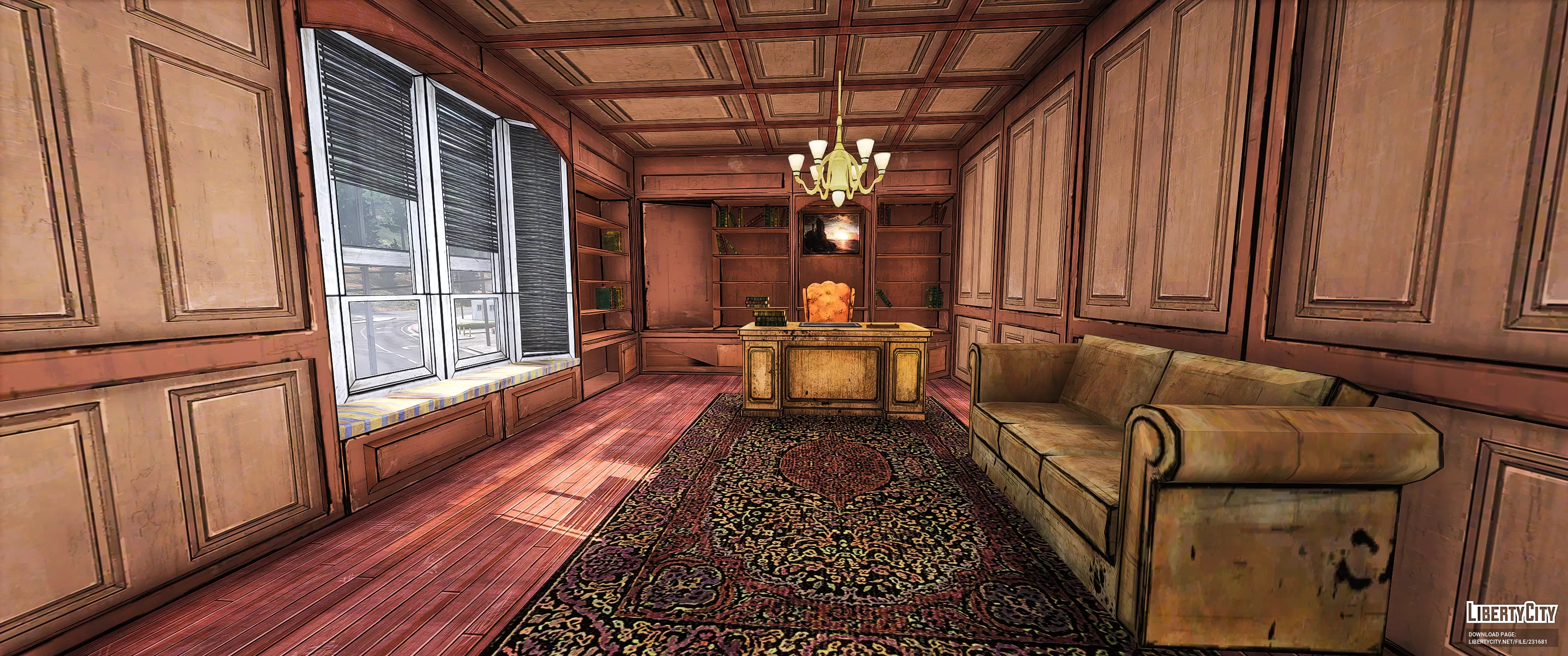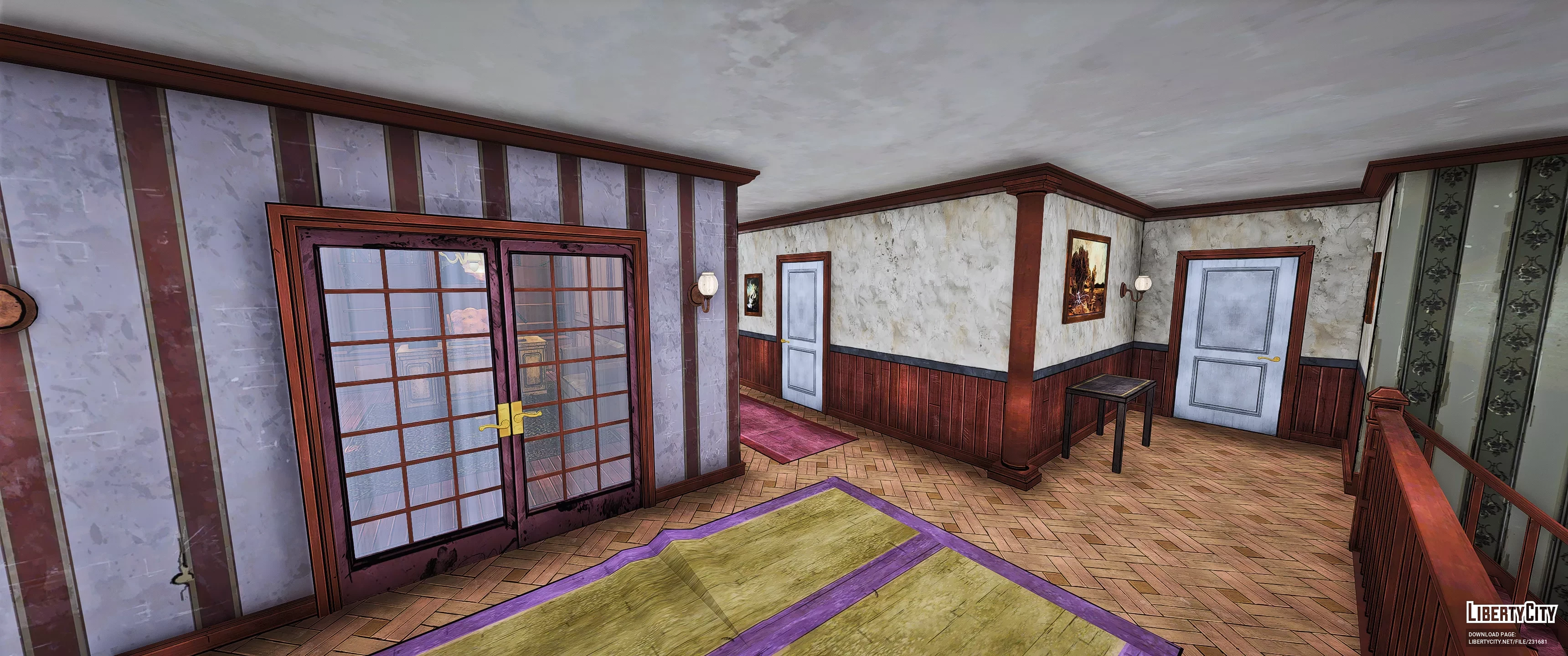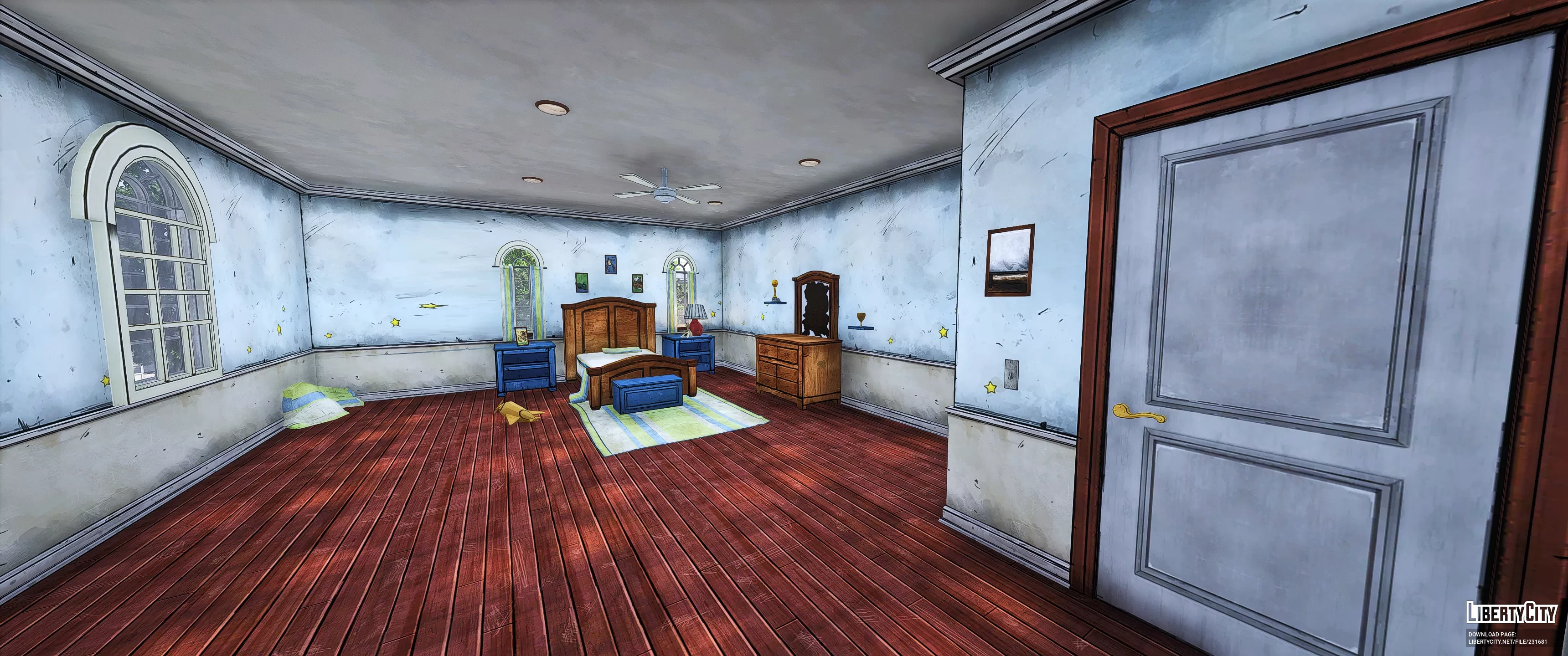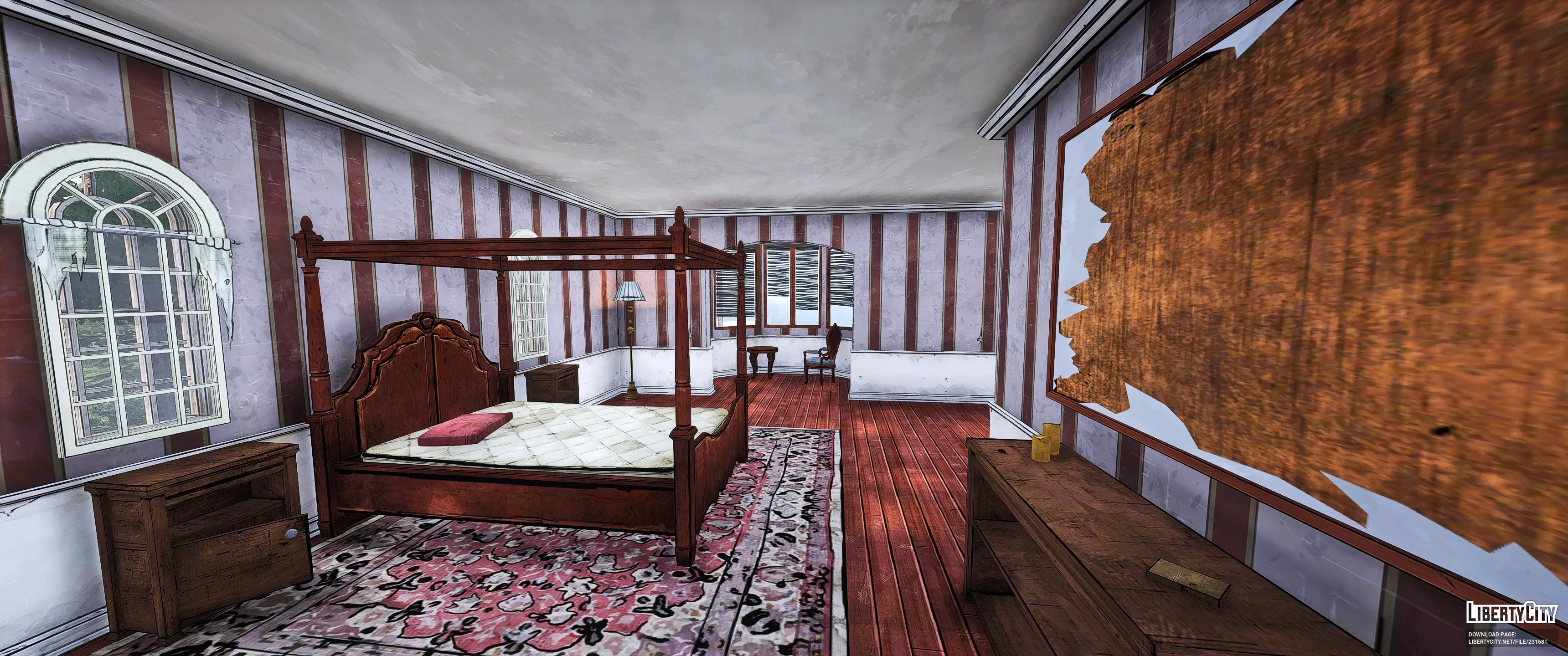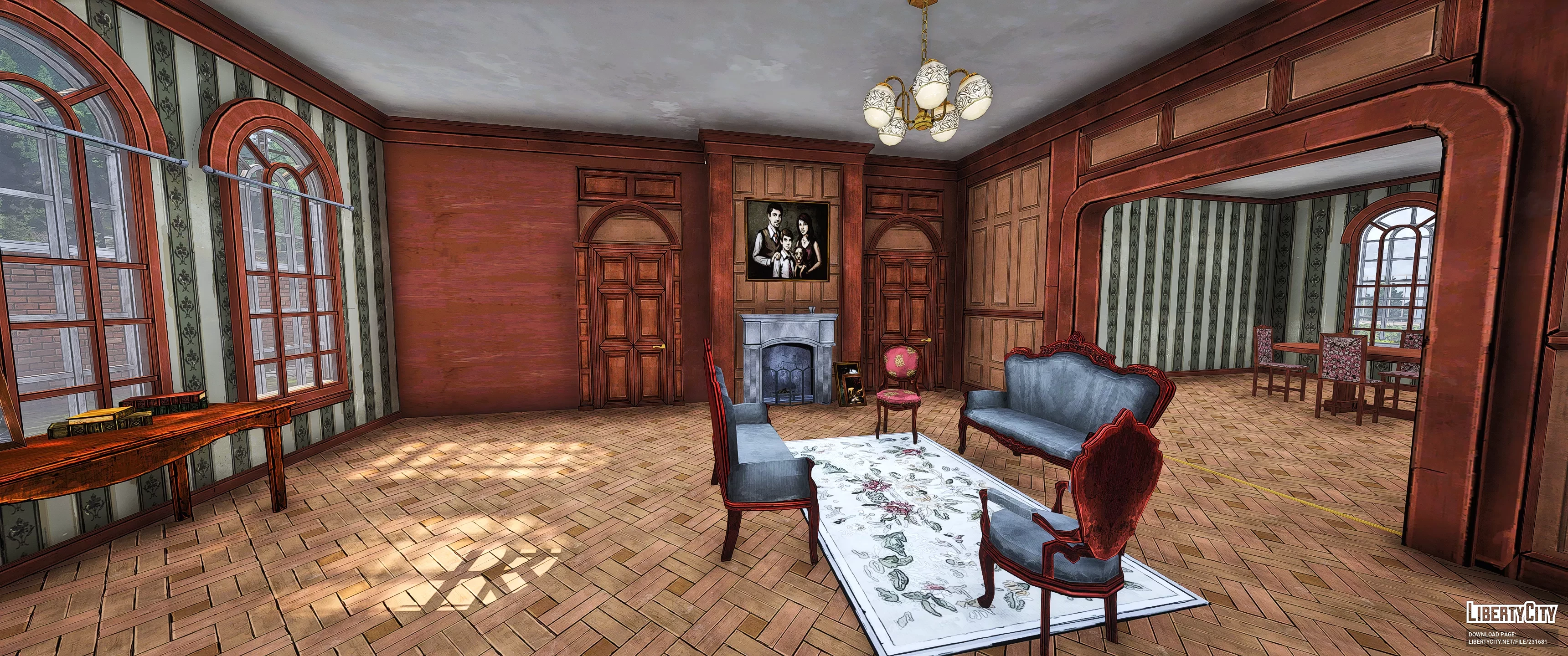 Особняк Fivel's Mansion из первого сезона TWD представляет собой двухэтажное здание из красного кирпича с классической прямоугольной формой. Фасад украшен белыми декоративными полосами между этажами. На первом этаже расположены три арочных окна и массивная деревянная дверь с полукруглым стеклянным верхом. Вокруг дома — кирпичный забор с воротами, а территория двора частично заросла травой и кустарниками. Особняк расположен среди высоких хвойных деревьев, недалеко от дороги, что придаёт ему уединённую атмосферу. Крыша выполнена из серой черепицы, а окна второго этажа имеют простую прямоугольную форму.
