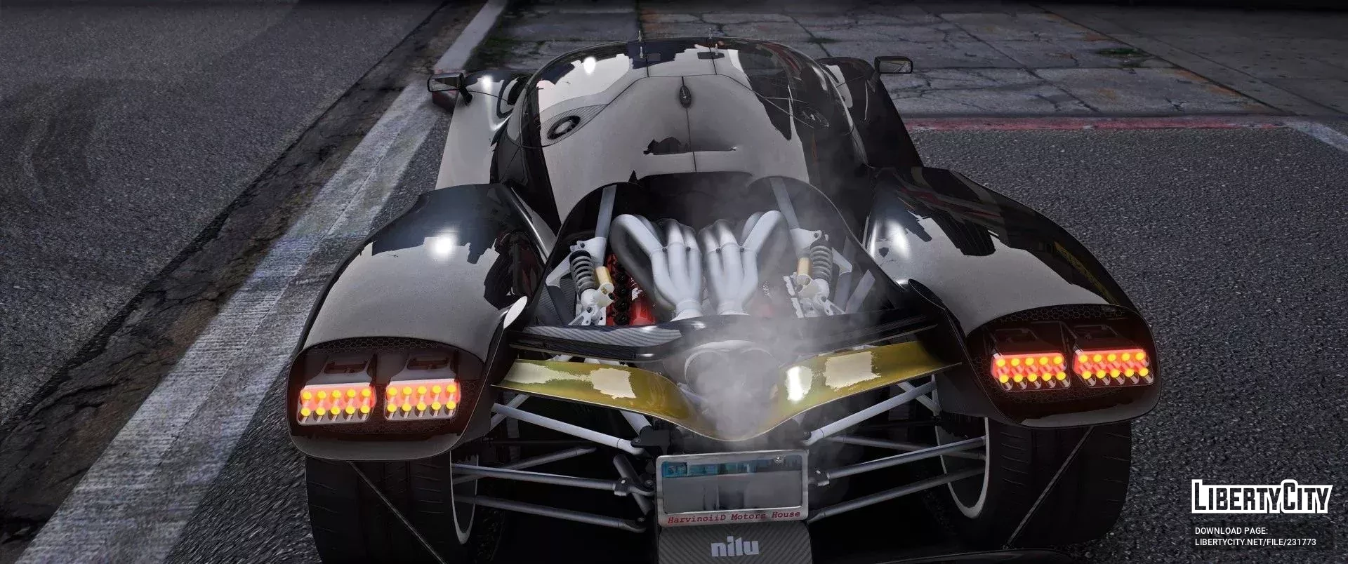 - Задняя часть отличается агрессивным дизайном с открытой архитектурой и видимыми элементами подвески и выхлопной системы.