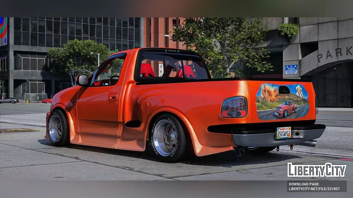 Главная особенность — аэрография на заднем борте: изображение пейзажа, пикапа и ковбоя добавляет уникальности и подчёркивает индивидуальный подход к тюнингу.