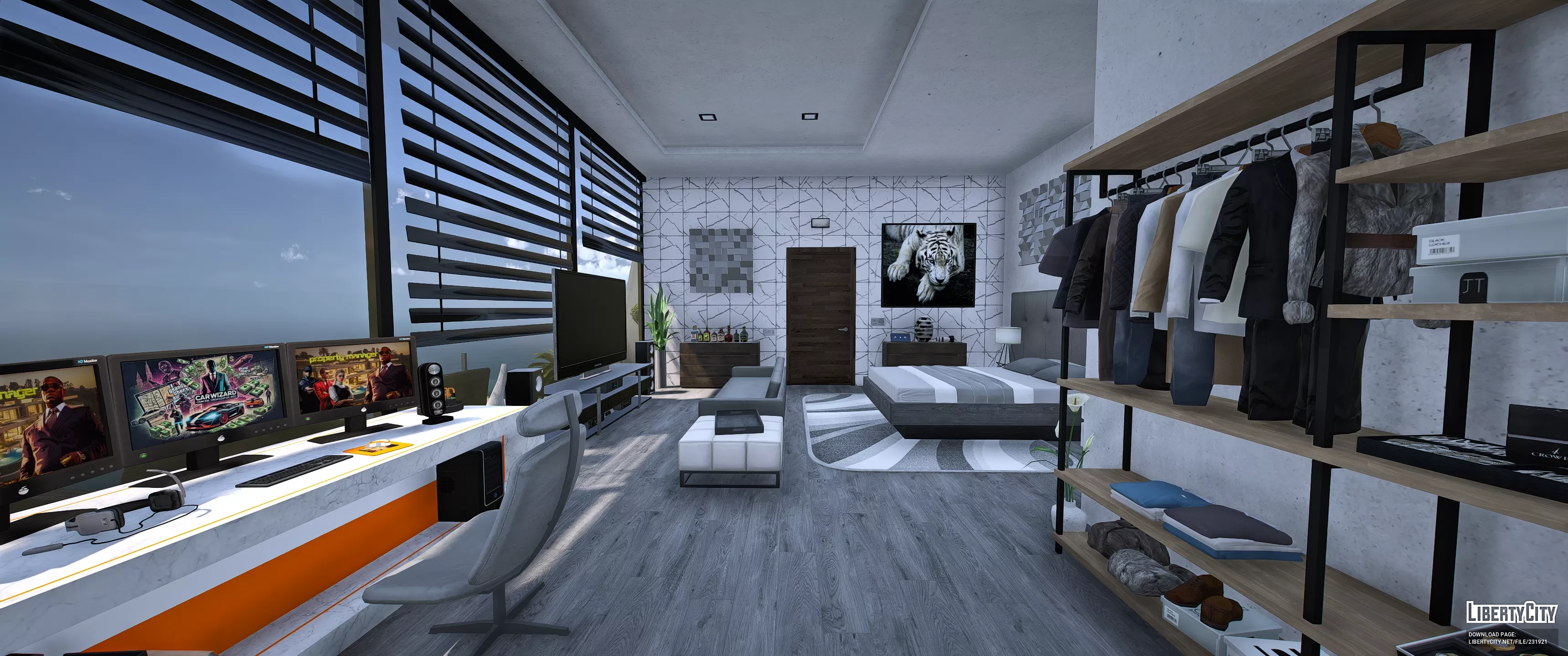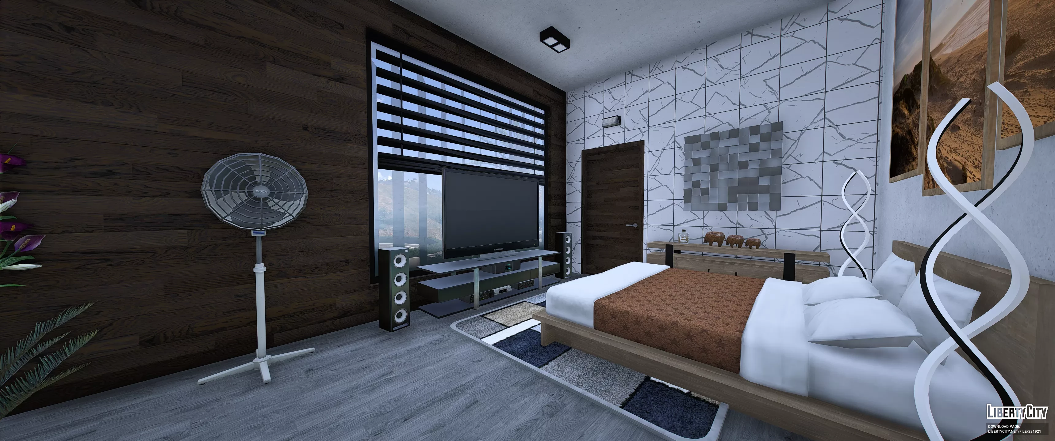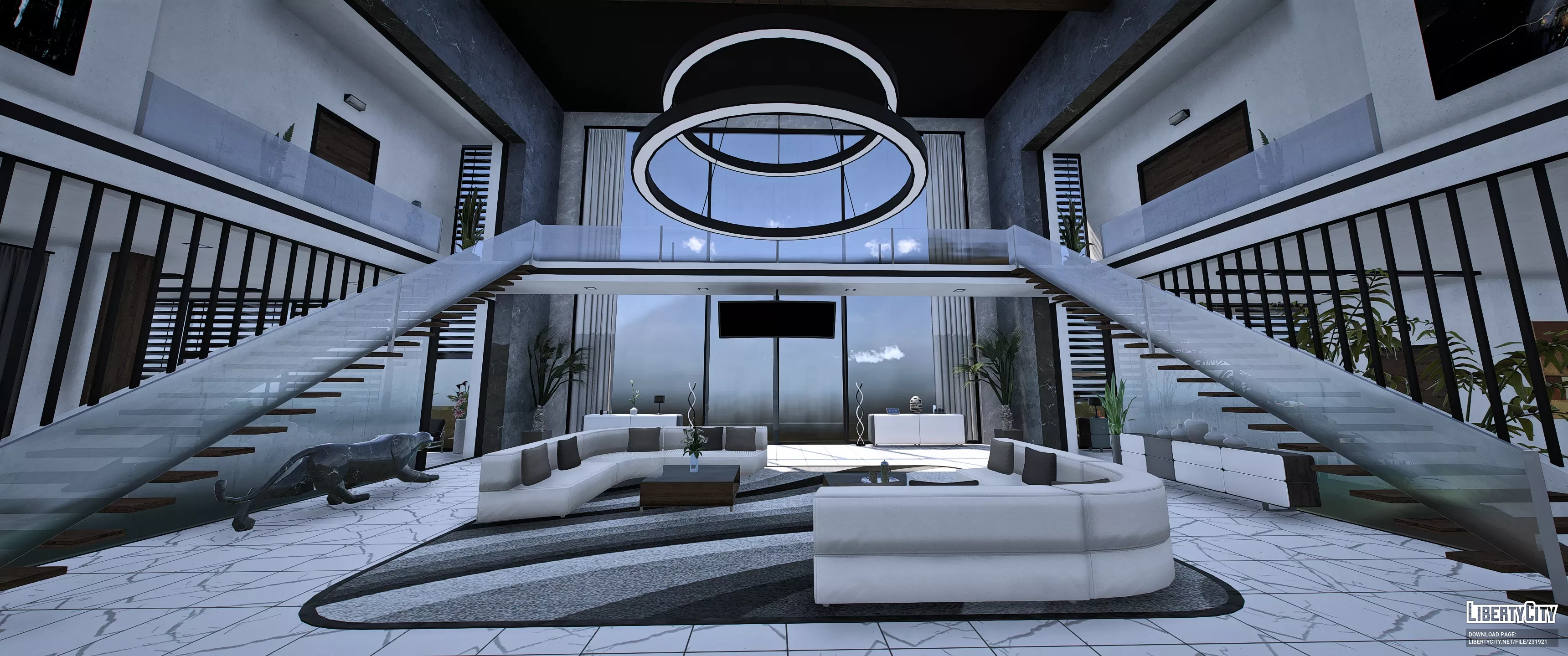 Beach Mansion 5 — это роскошный современный особняк, расположенный на возвышенности с панорамным видом на окрестности. Здание выполнено в стиле хай-тек с преобладанием стеклянных фасадов и четких геометрических линий. Особняк стоит на массивных бетонных опорах, что создает эффект парения над скалой.