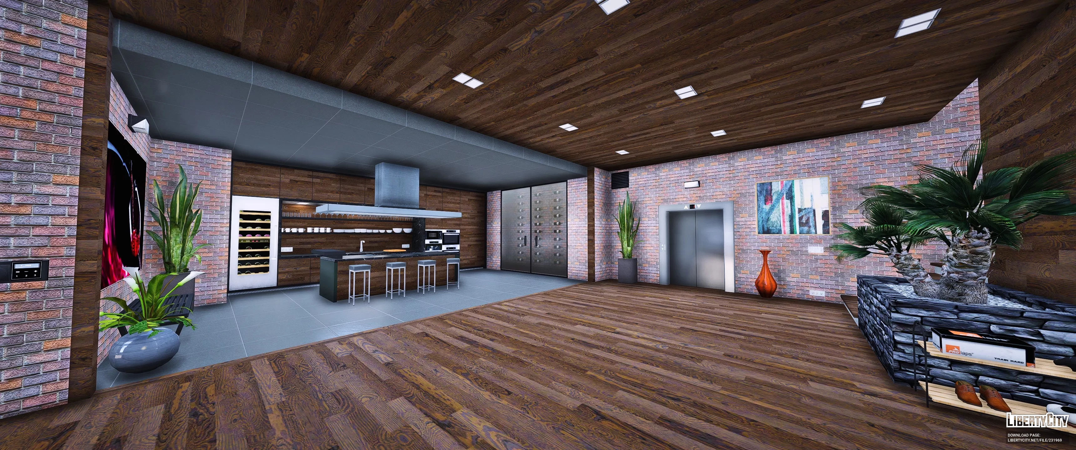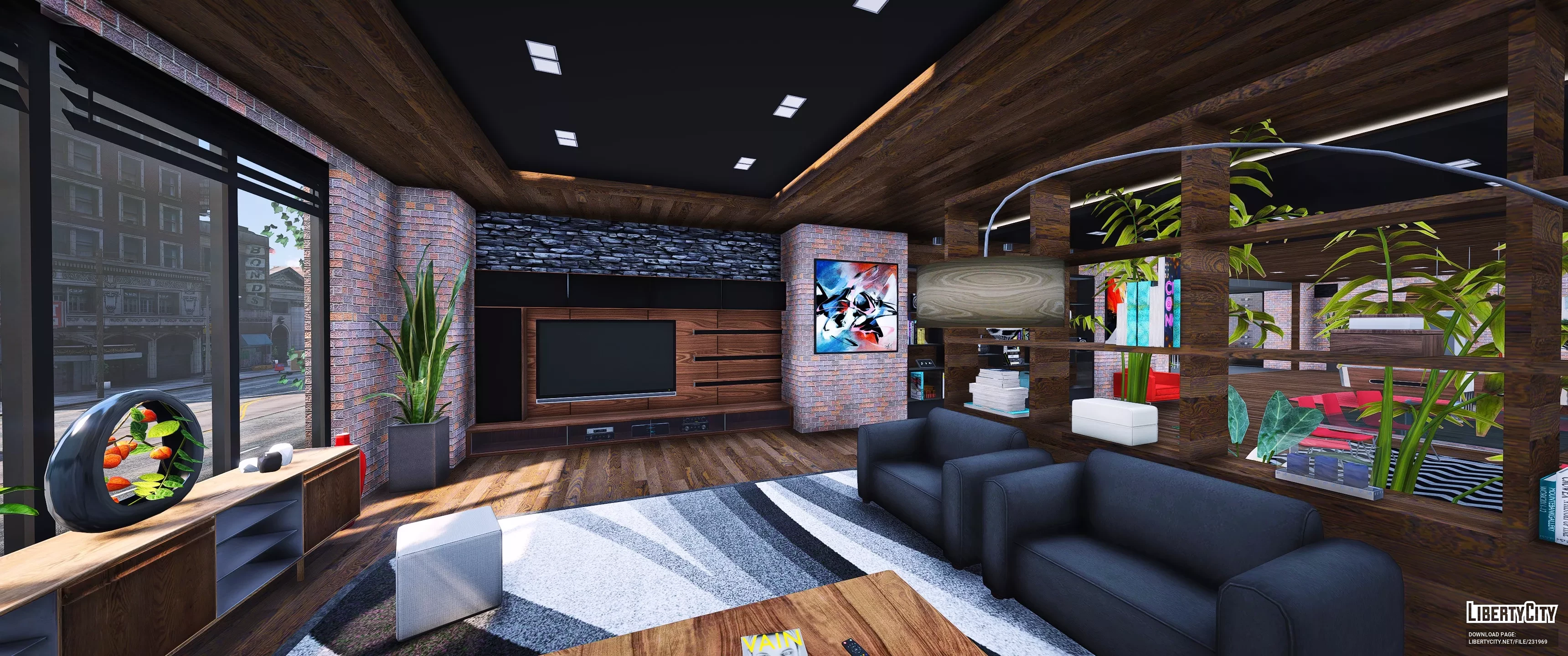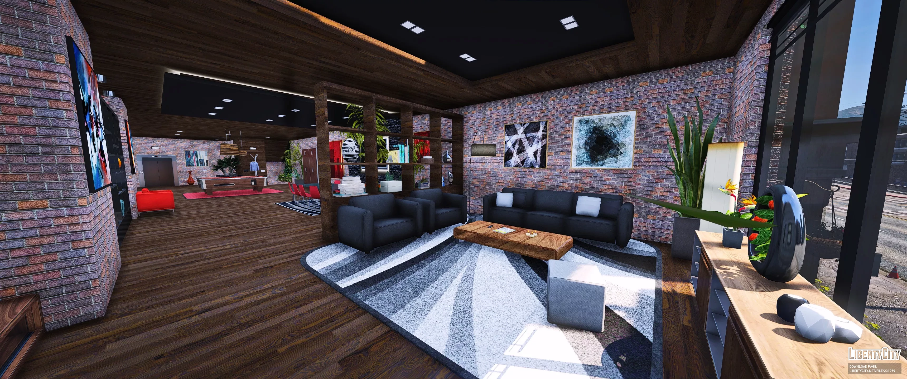 Внешний вид апартаментов "New York Vibe" выполнен в стиле типичного нью-йоркского лофта. Фасад здания выложен кирпичом, что придаёт ему индустриальный и современный вид. На первом этаже расположены большие ворота с металлической решёткой, что напоминает гараж или мастерскую. Над воротами находятся широкие окна, через которые видны элементы интерьера. Окна украшены зелёными растениями и цветочными ящиками, что добавляет уюта и живости. Сбоку у входа стоят декоративные растения в горшках. Фасад здания гармонично вписывается в городскую архитектуру благодаря соседству с высокими зданиями в классическом стиле.