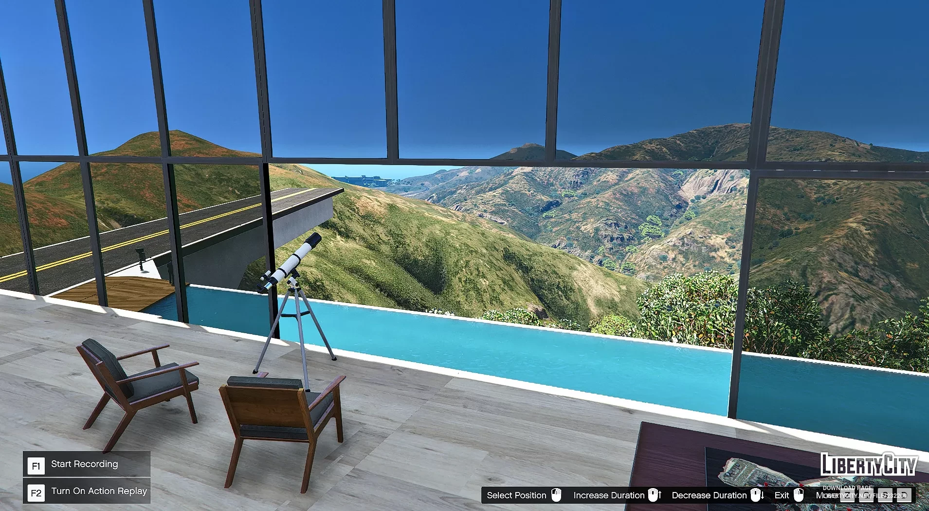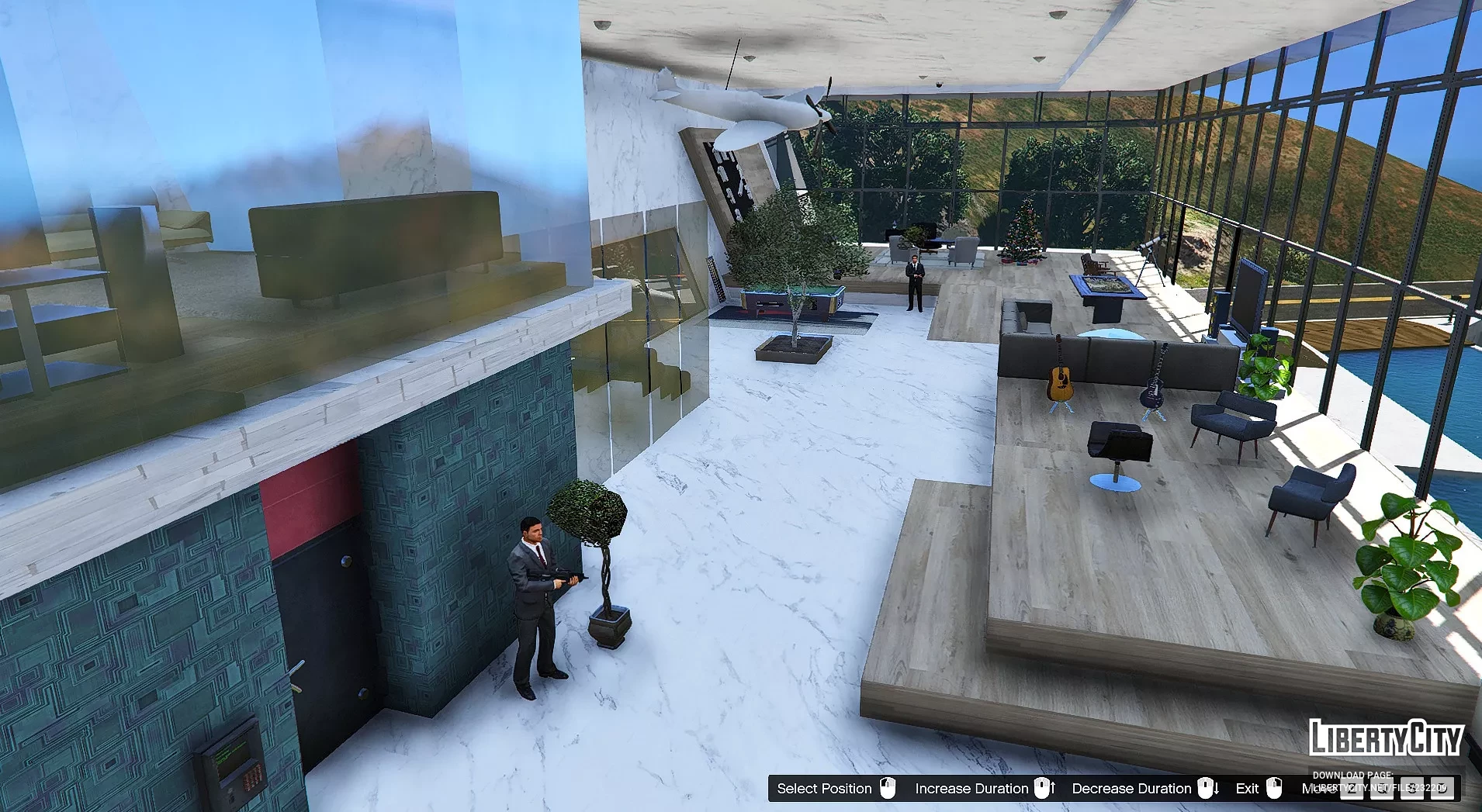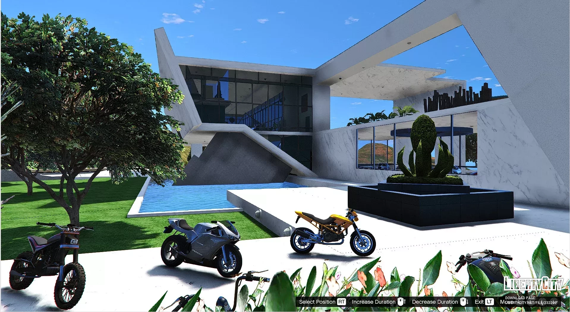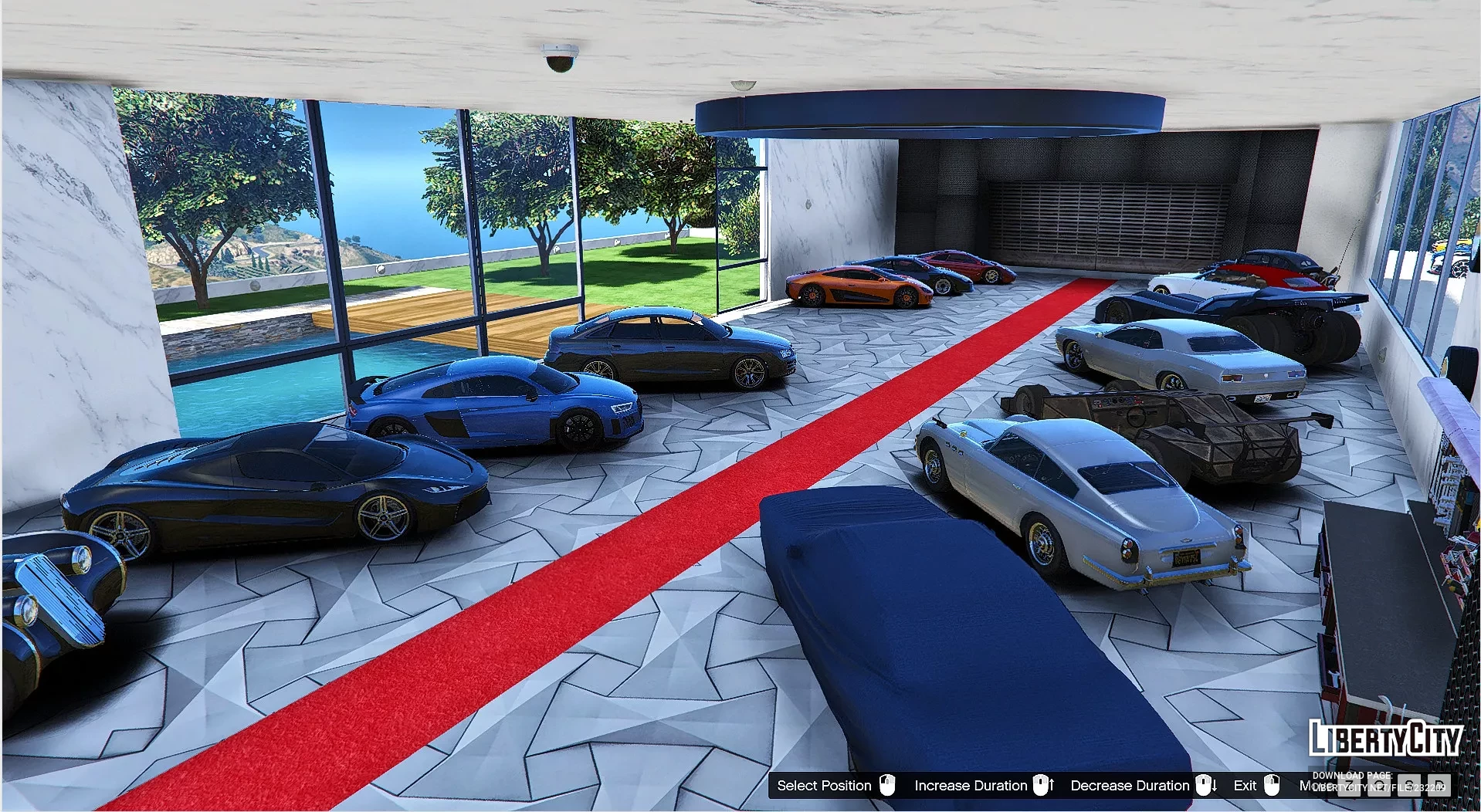 На территории имеется отдельная большая круглая вертолётная площадка, а также частная взлётно-посадочная полоса с несколькими самолётами, что подчёркивает статус владельца и его любовь к роскоши и свободе передвижения. В нижней части особняка находится огромный гараж с коллекцией эксклюзивных автомобилей, который отделён от внешнего пространства панорамными окнами.