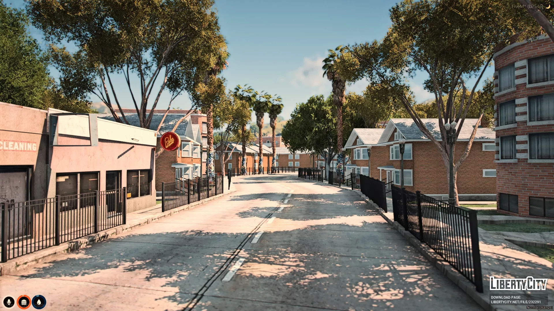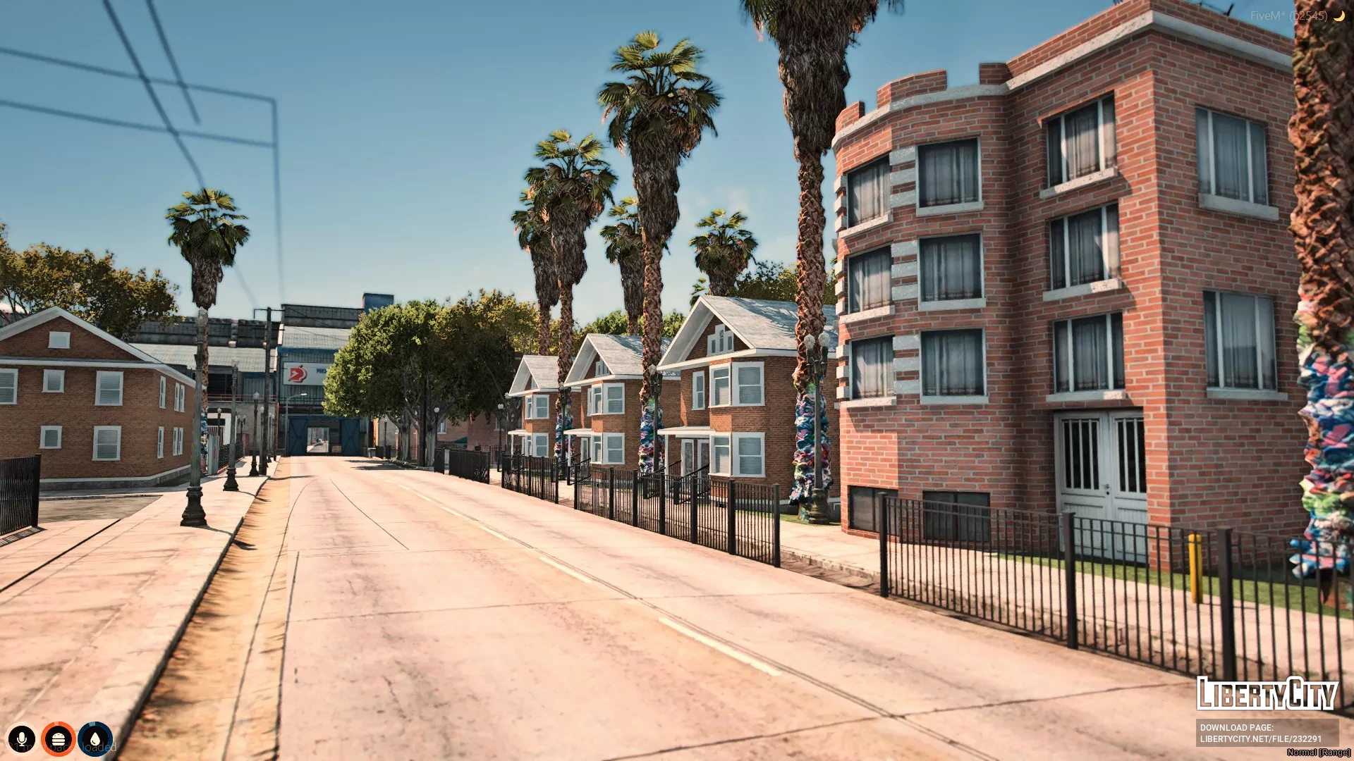Вокруг района заметны промышленные постройки, склады и железнодорожные пути, что подчёркивает индустриальный стиль. На стенах зданий и заборах много граффити, что придаёт району характерный уличный колорит. В целом, Chicago Hood выглядит как типичный рабочий квартал большого города: плотная застройка, зелёные насаждения, индустриальное окружение и атмосфера настоящего городского гетто.