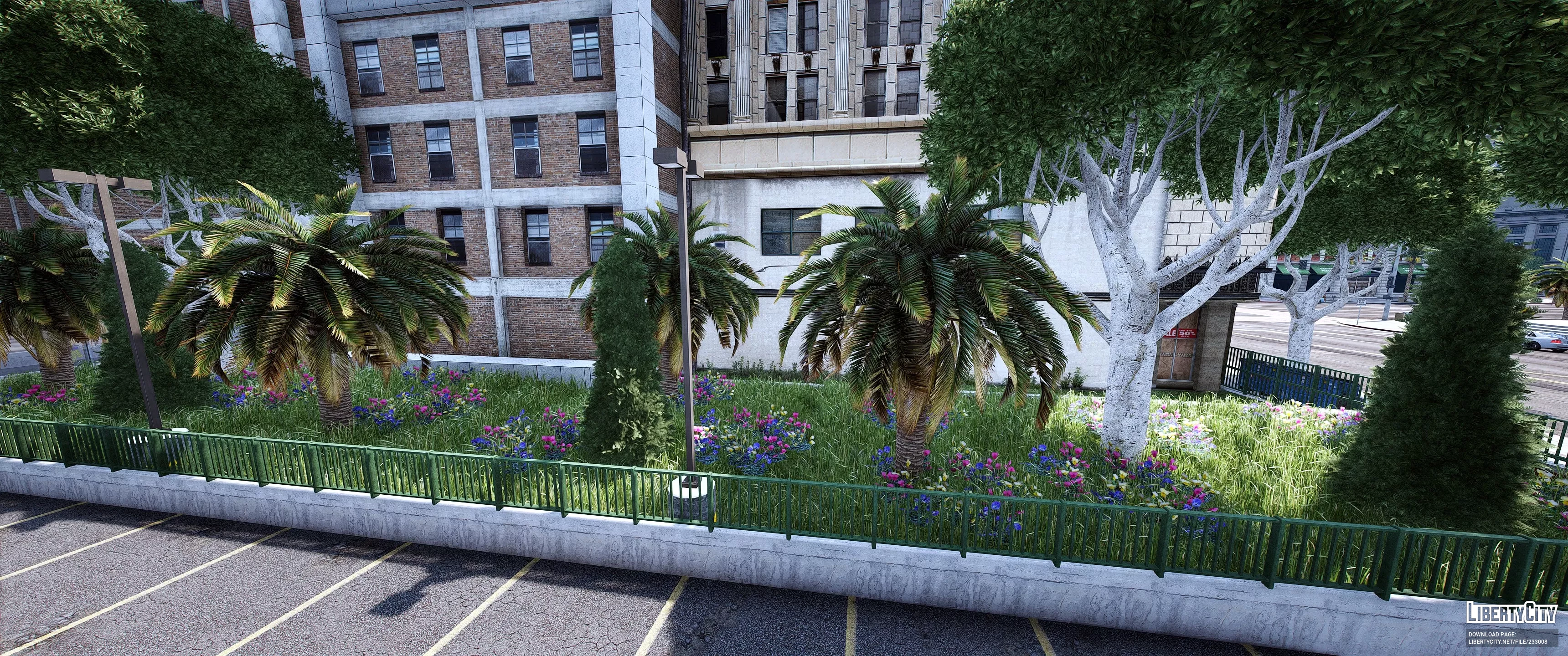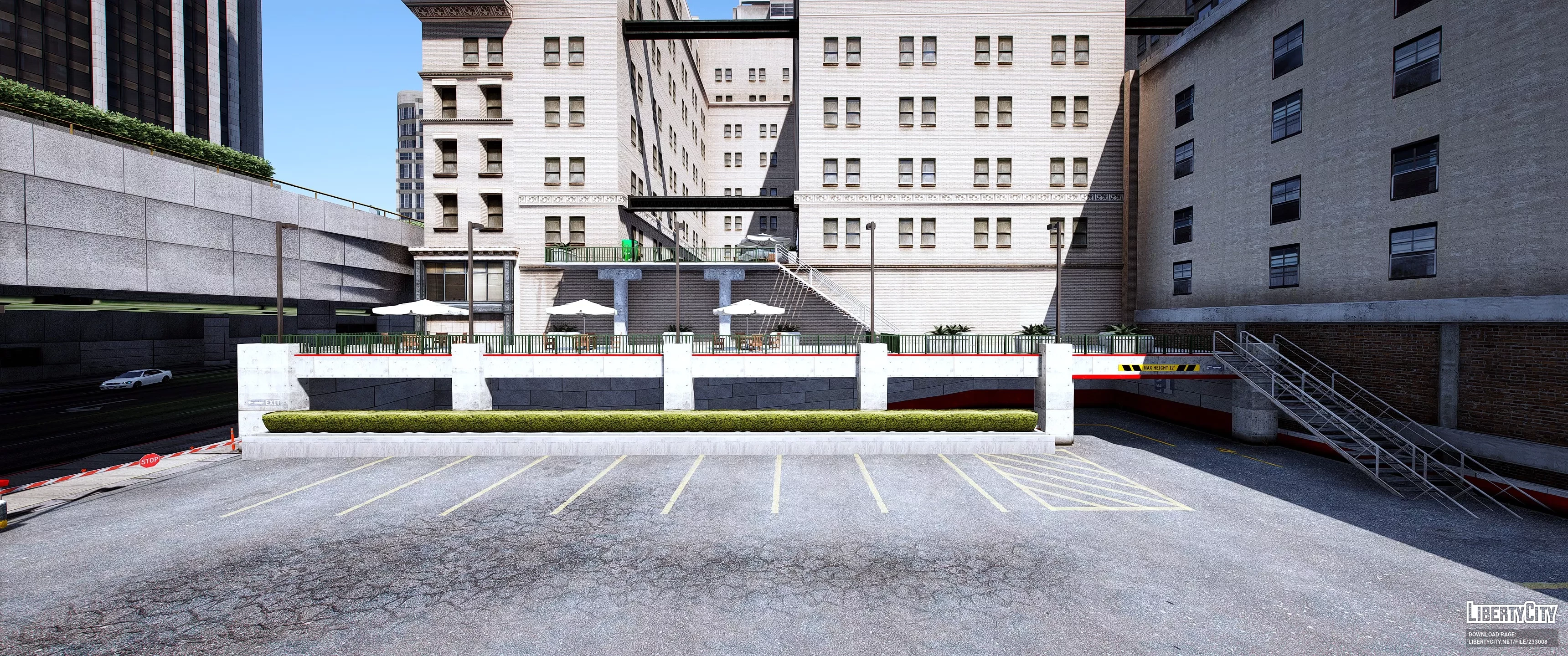 Территория парковки окружена пальмами и ухоженными зелёными насаждениями, что придаёт ей приятный и привлекательный вид. Вокруг расположены современные многоэтажные здания, которые подчёркивают урбанистический стиль локации. Тротуары чистые и широкие, а дорожная разметка хорошо заметна. В целом, ParkingV выглядит как современная, хорошо организованная городская парковка с элементами безопасности и комфорта для водителей.