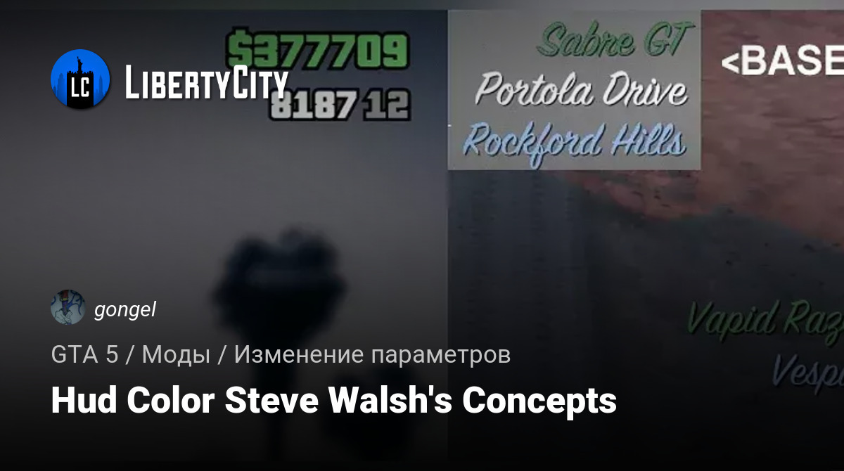 Это небольшой мод, который изменяет цвет денег на зеленый (в стиле Онлайн) и восстанавливает цвета названия области и названия автомобиля из оригинальных концепций HUD Стива Уолша.