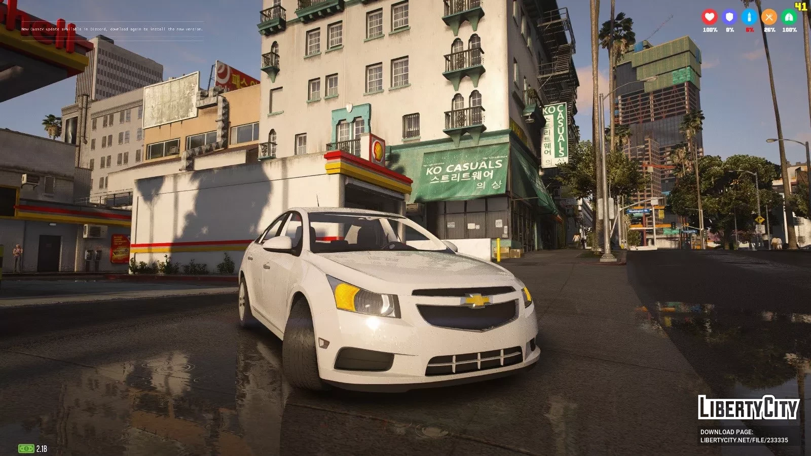 Chevrolet Cruze 2012 (модифицированный) для GTA 5 Особенности: Двухцветная покраска; Черные фары; Тонированные стекла; Спойлер; Черная хромированная накладка багажника. Приятной игры! ...