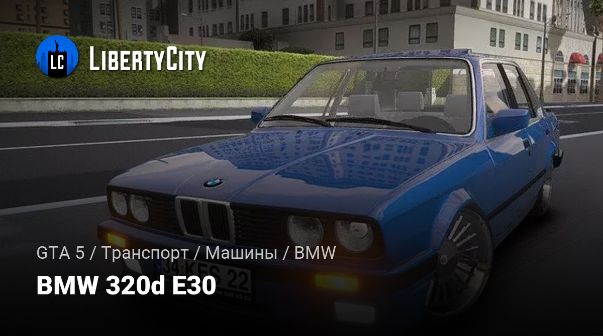 BMW 320d E30 — это классический представитель немецкого автопрома 80-х годов. Кузов выполнен в стиле седан с характерными угловатыми линиями и компактными размерами. На фото автомобиль окрашен в насыщенный синий цвет, что придаёт ему спортивный и яркий вид. Спереди выделяются фирменные двойные круглые фары и классическая решётка радиатора с двумя "ноздрями", которые являются визитной карточкой BMW. Передний бампер оснащён противотуманными фарами и оранжевыми указателями поворота.