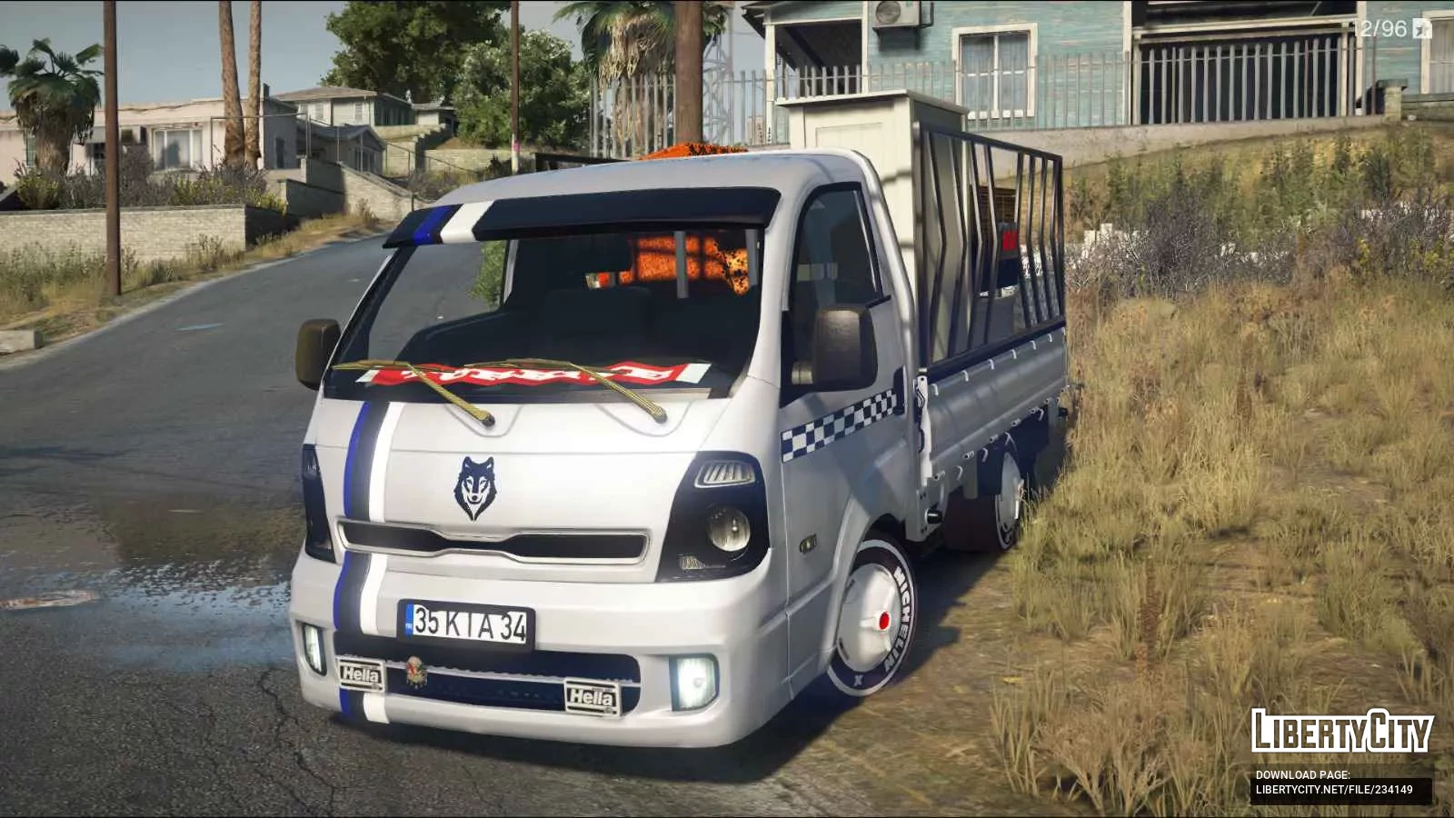 Kia Bongo, выполненный в белом цвете. Капот украшен двумя синими полосами и эмблемой волка по центру. На лобовом стекле установлен козырёк, а также присутствует красная надпись на турецком языке. Фары имеют затемнённую оптику, а под бампером установлены дополнительные противотуманные фары Hella. На дверях и по бокам кузова проходит декоративная шахматная полоса, придающая автомобилю спортивный вид. На колёсах установлены белые декоративные колпаки с надписями. Кузов оборудован металлическими бортами с вертикальными прутьями.