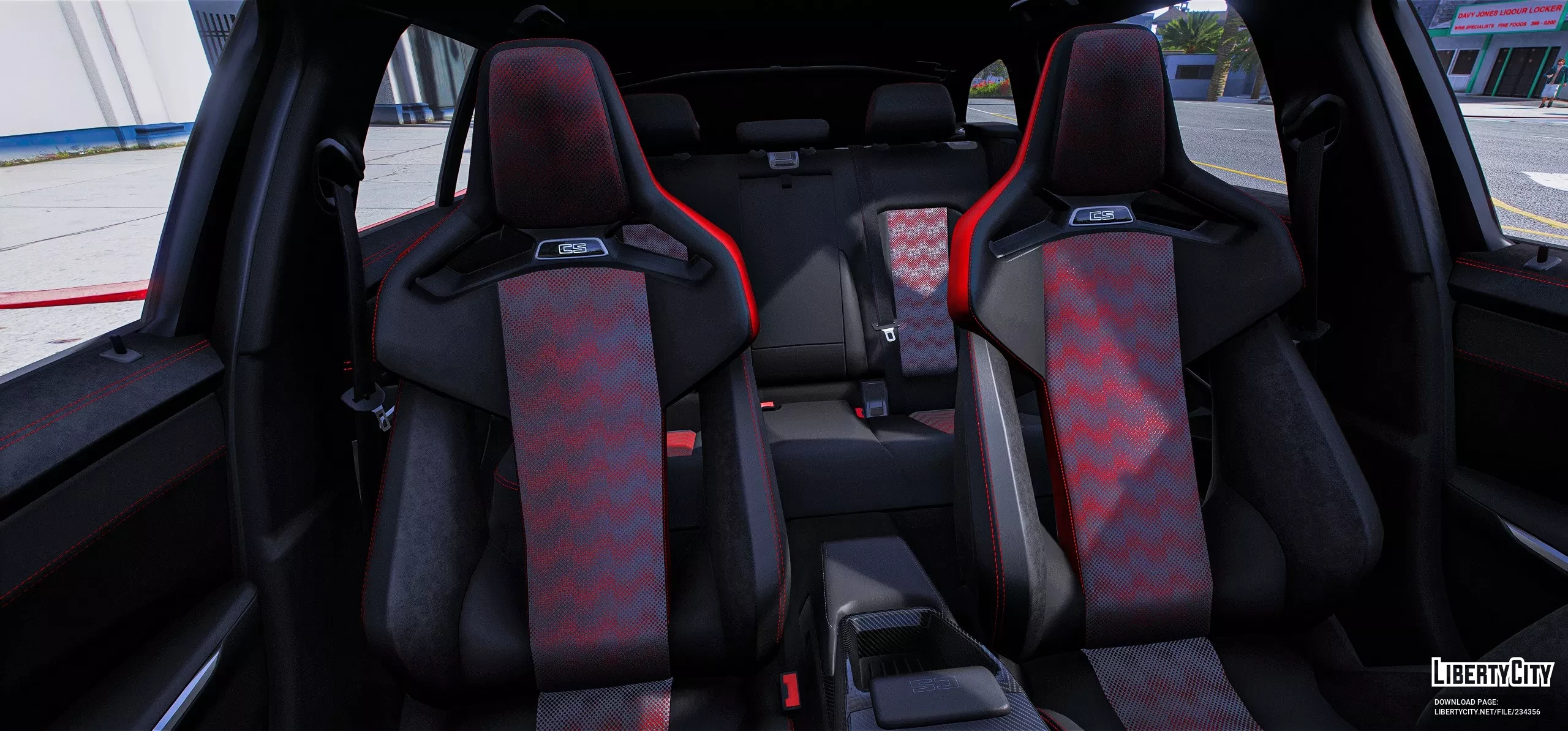 - Бампер: Массивный передний бампер с большими воздухозаборниками для охлаждения, карбоновым сплиттером снизу и вентиляционными отверстиями. Красные вставки добавляют спортивности.