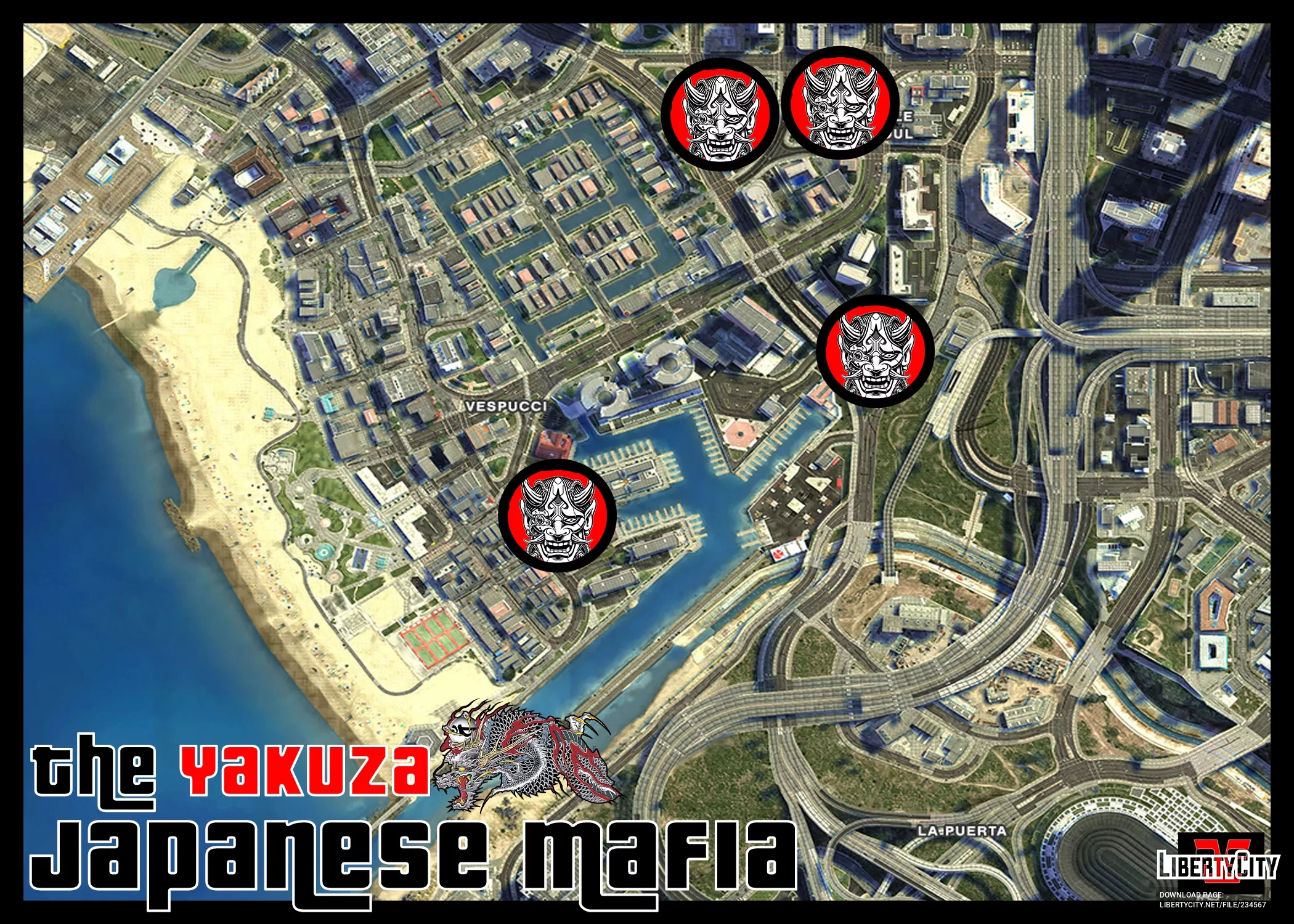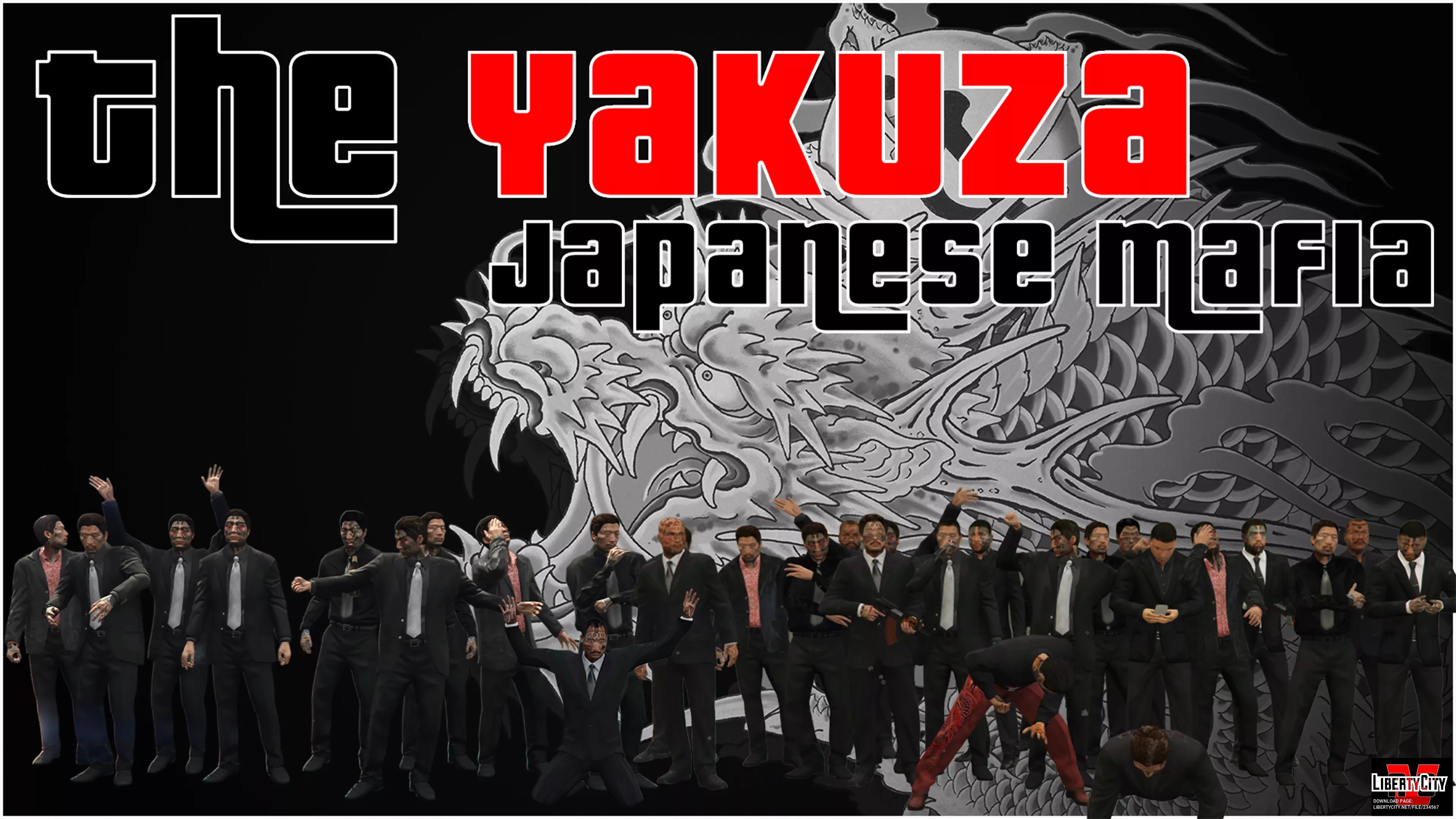 Эта модификация добавляет в GTA 5 педов (NPC) в образе якудза — членов японских транснациональных организованных преступных синдикатов с многовековой историей. Модели выполнены в стилистике классических гангстеров, с характерной атрибутикой и внешним видом. В данной версии отсутствуют модели банды «ккэпэ» (kkangpae), они опасны.