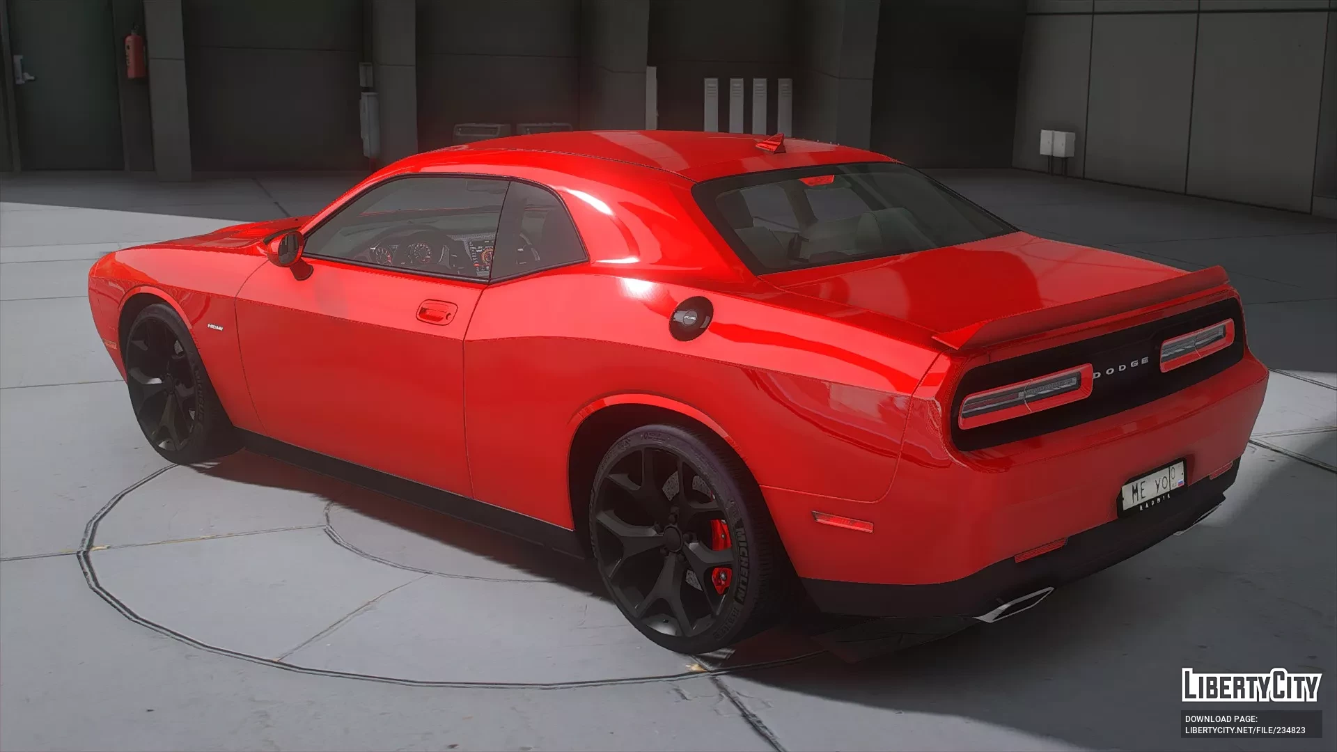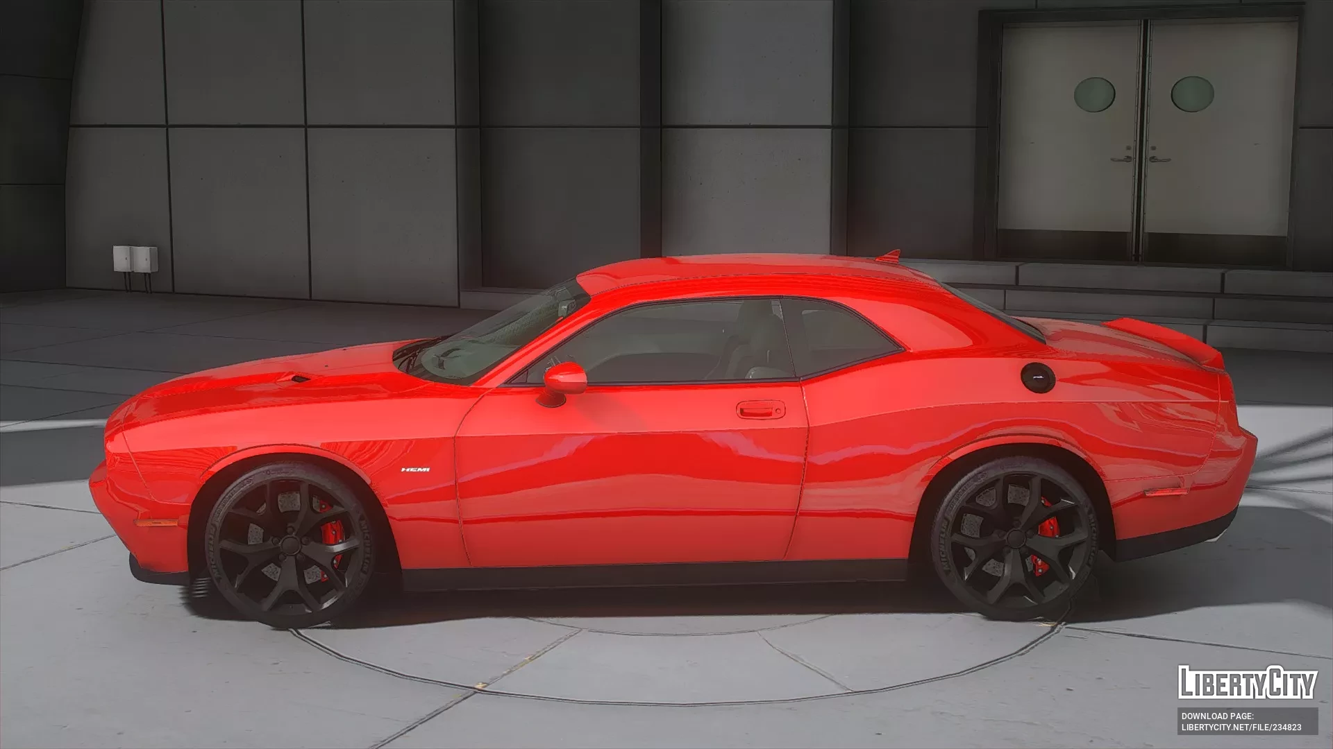 - Логотип Dodge и обозначение «CHALLENGER» на задней части кузова, а также надпись «HEMI» рядом с фонарями, подчёркивающая модельную и двигателевую идентичность.
