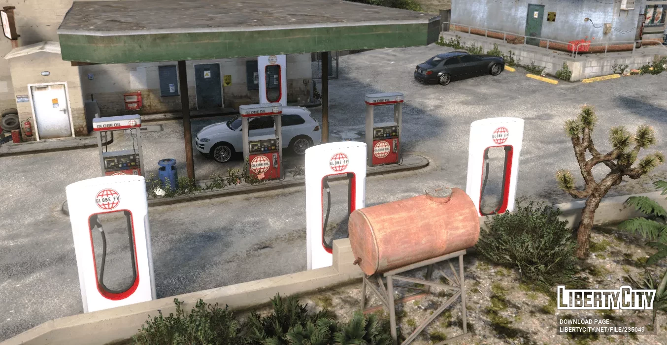 Мод Global EV [YMAP / FiveM] добавляет зарядные станции для электромобилей, выполненные в стиле вселенной GTA, на все автозаправки Лос-Сантоса и округа Блэйн. Благодаря этому модификация делает игровой мир более современным и реалистичным, а также поддерживает идею экологичного транспорта. Для зарядки используются уникальные кастомные станции, созданные специально для этого мода.