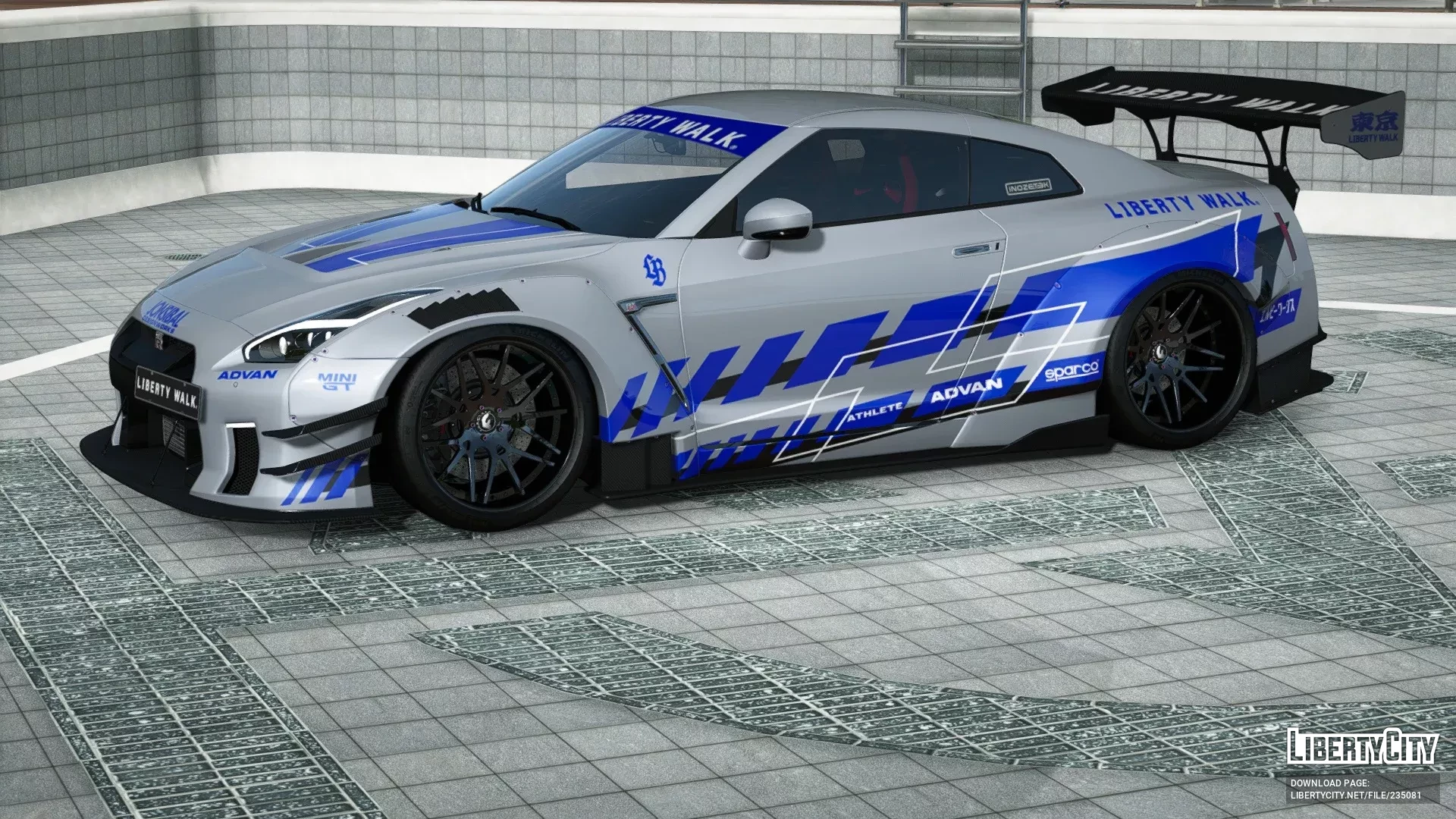 - Фирменные шильдики Liberty Walk и дополнительные наклейки завершают уникальный образ Nissan GT-R LB-WORKS Final Edition Complete.