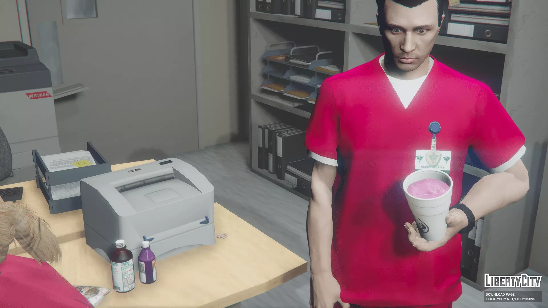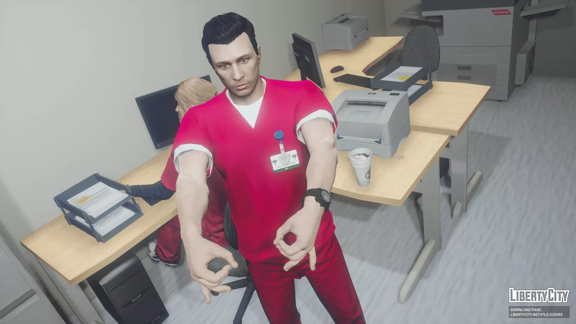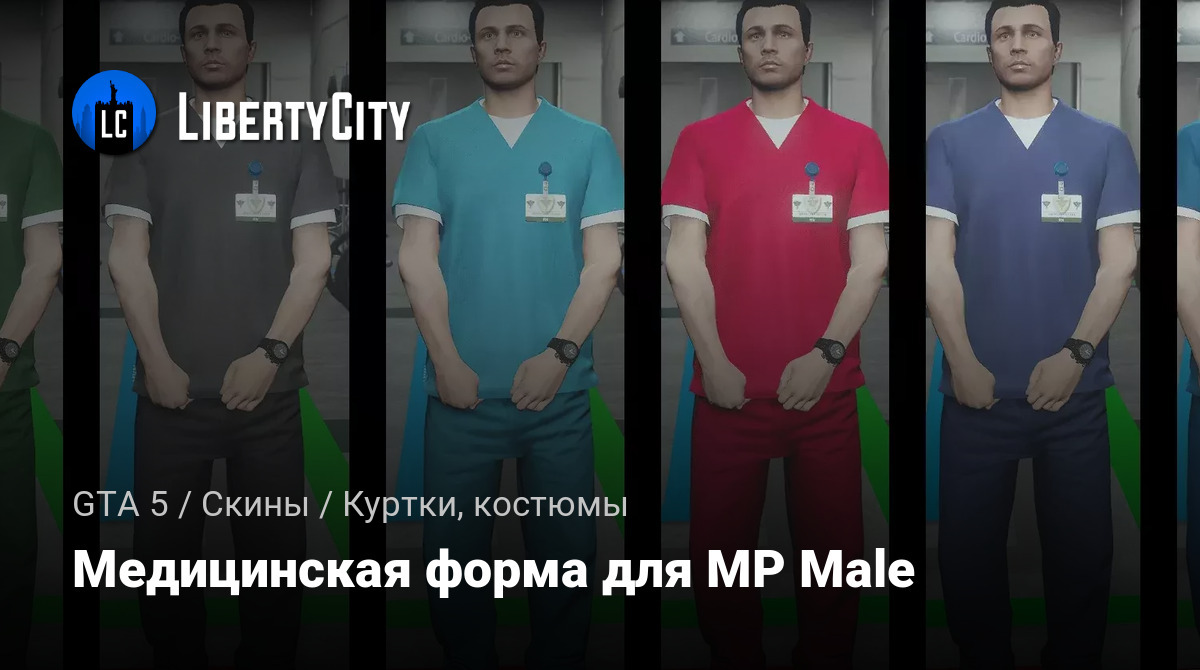 Мод Hospital Scrubs for MP Male добавляет в GTA 5 медицинские костюмы для мужских персонажей. Эти скрабы подойдут для роли медбрата, врача или даже подпольного хирурга — используйте их как угодно. В комплекте есть аксессуар-бейджик, который можно перекрасить под любое имя, а также 6 цветовых вариантов.