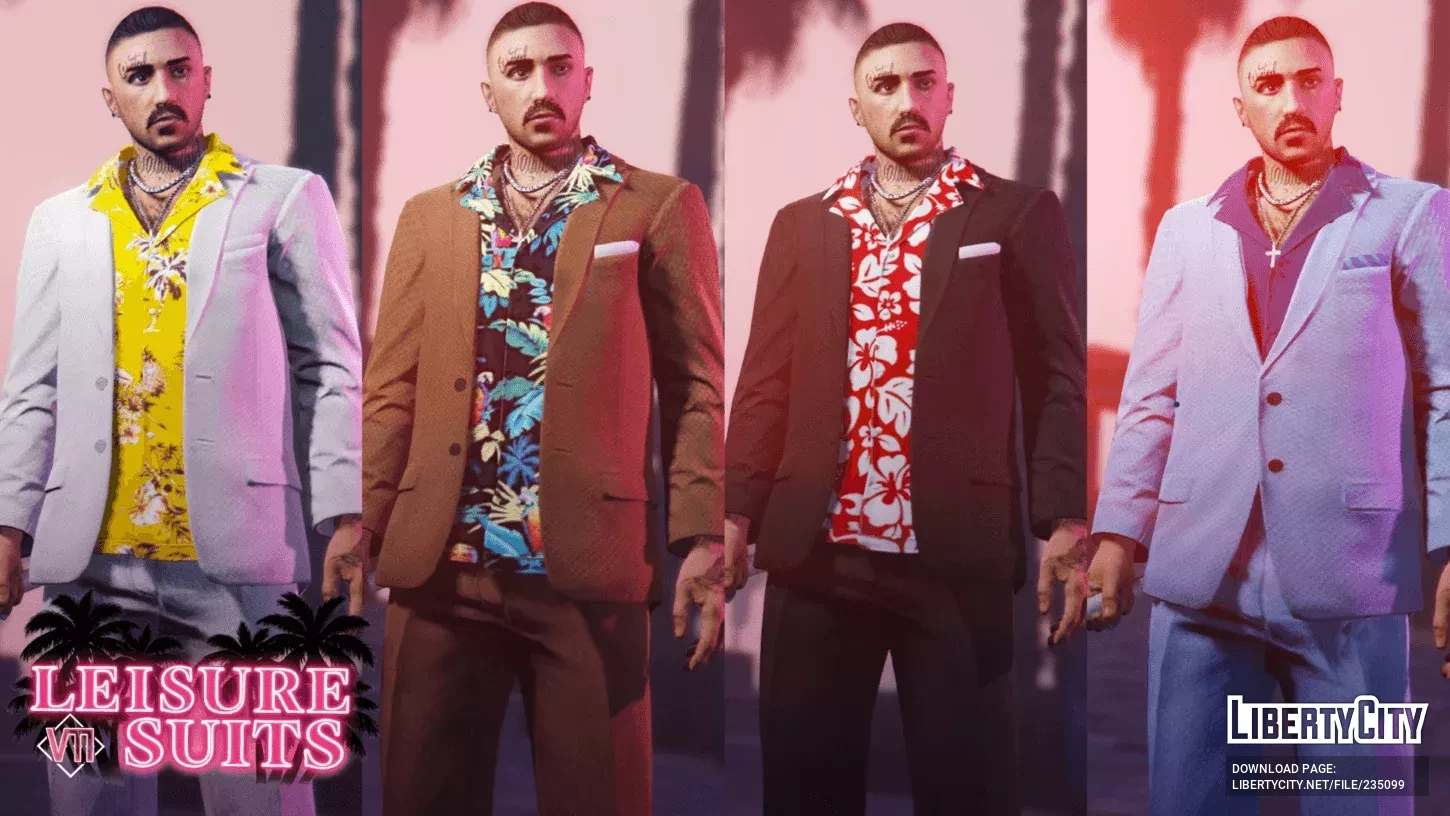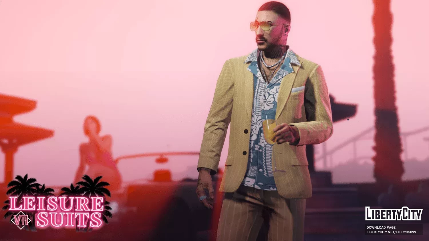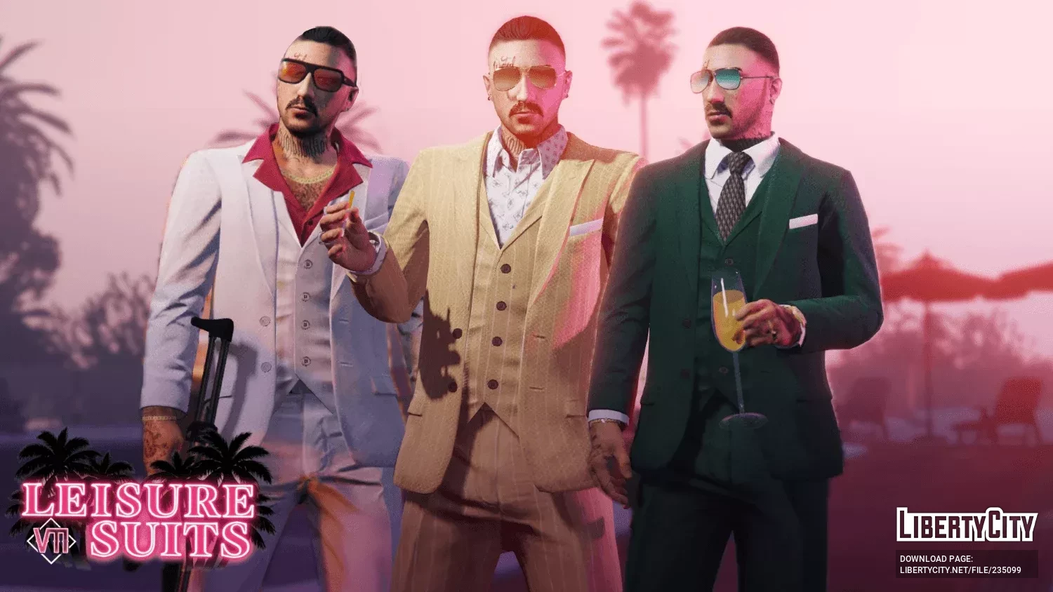 Мод Leisure Suits for MP Male добавляет в GTA 5 стильные костюмы с яркими панамами и экзотическими узорами, которые точно привлекут внимание на пляже Веспуччи или среди местных жителей. Теперь вы сможете выглядеть как кинозвезда из Вайнвуда, даже если просто зашли за кофе и переживаете финансовые трудности. В комплекте есть как однотонные, так и гавайские варианты рубашек под костюм, а также новые жилеты и замена некоторых пиджаков и брюк из гардероба mpvinewood.