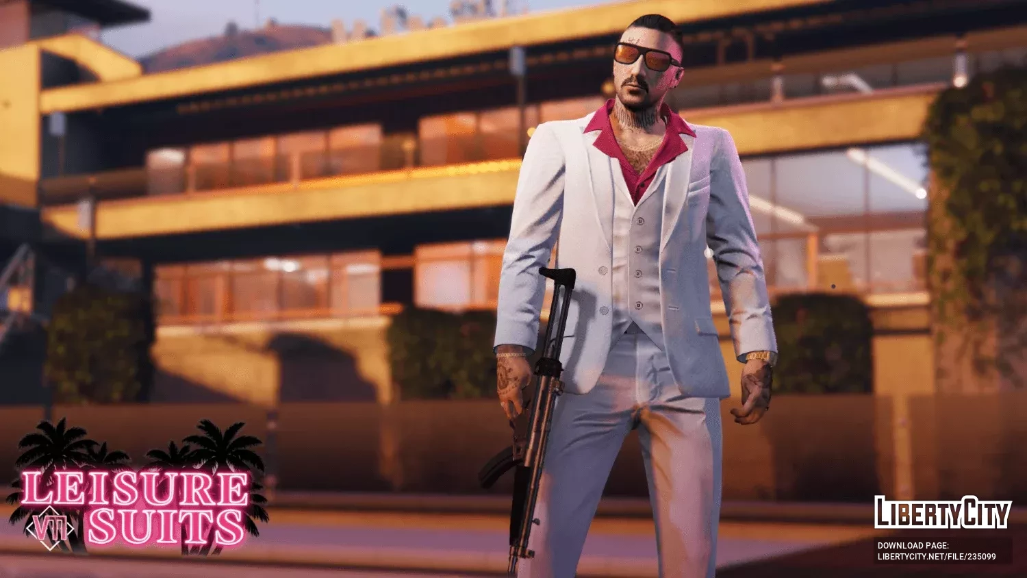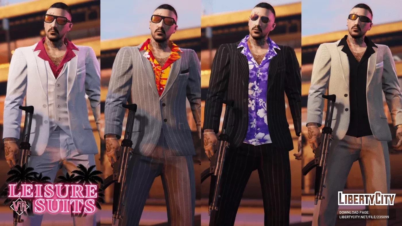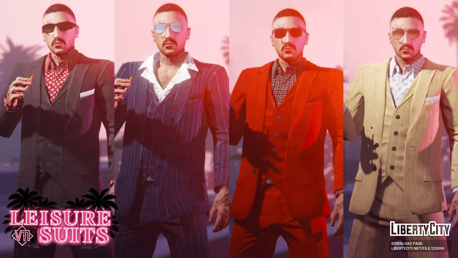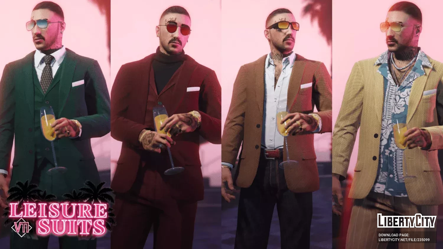 Мод Leisure Suits for MP Male добавляет в GTA 5 стильные костюмы с яркими панамами и экзотическими узорами, которые точно привлекут внимание на пляже Веспуччи или среди местных жителей. Теперь вы сможете выглядеть как кинозвезда из Вайнвуда, даже если просто зашли за кофе и переживаете финансовые трудности. В комплекте есть как однотонные, так и гавайские варианты рубашек под костюм, а также новые жилеты и замена некоторых пиджаков и брюк из гардероба mpvinewood.