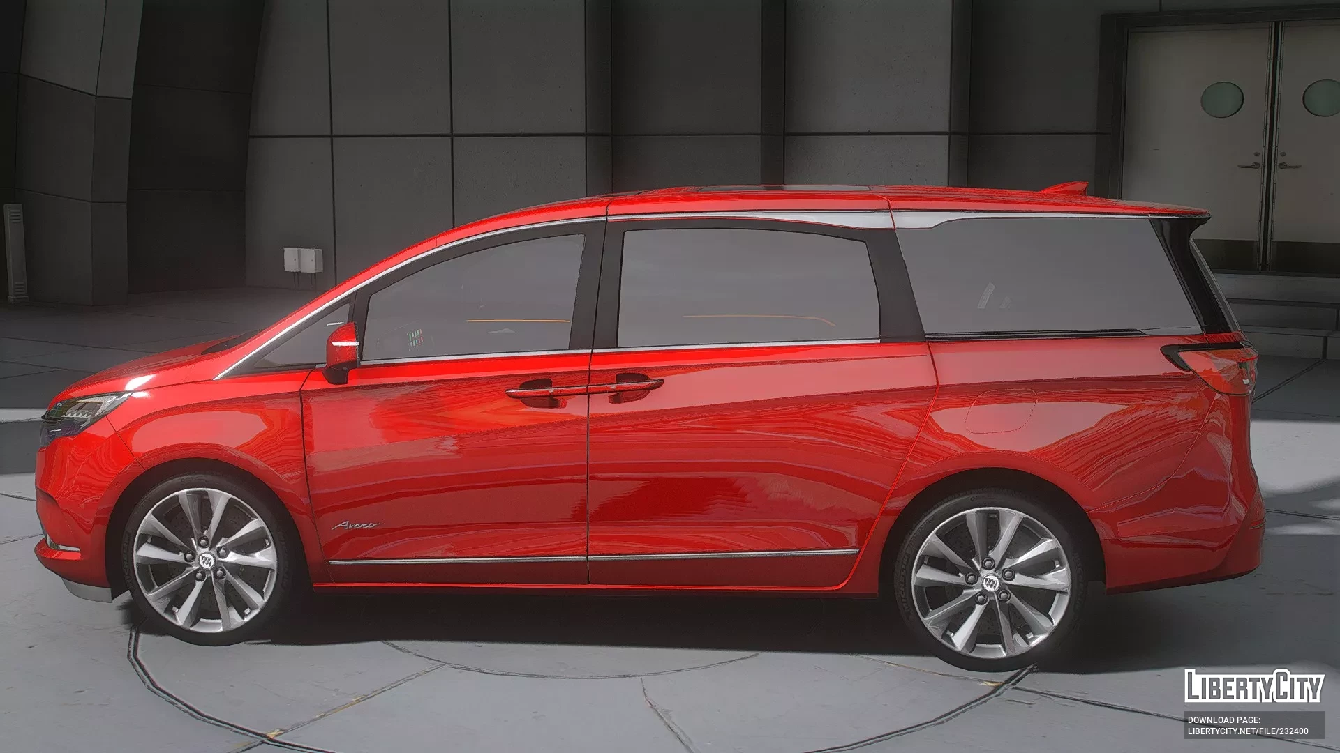 2020 Buick GL8 Avia для GTA 5. Передняя часть: Капот с плавными переходами и фирменной выштамповкой подчёркивает современный стиль минивэна. Круп...
