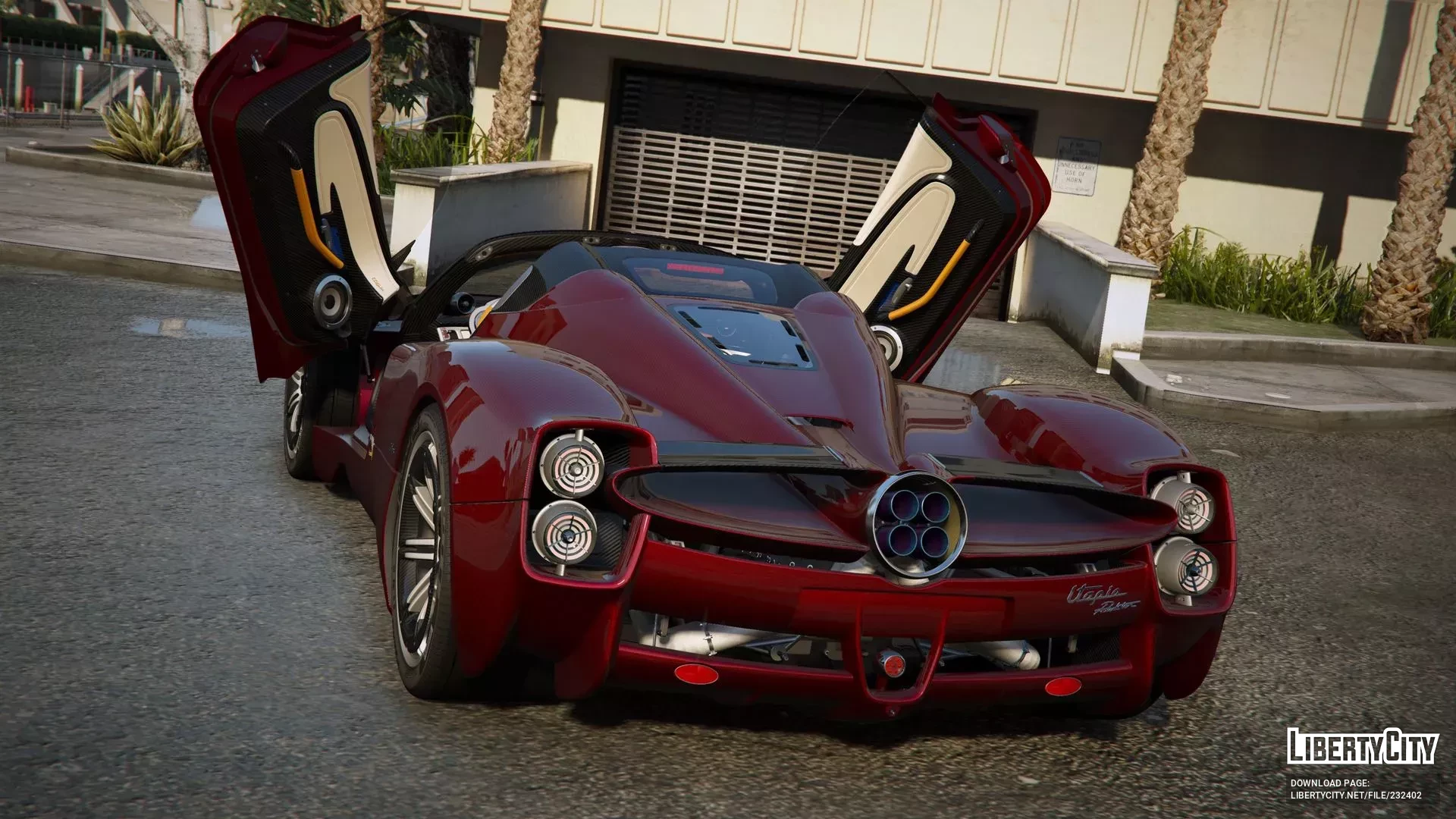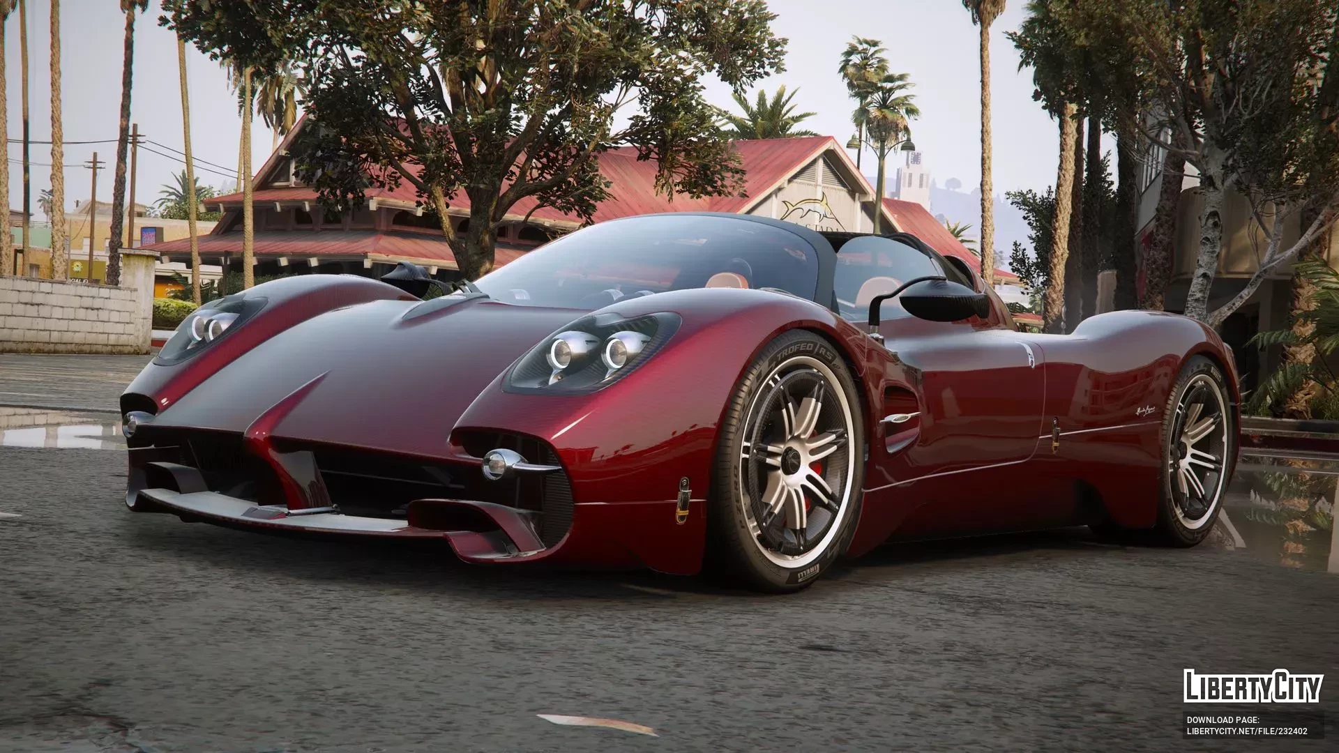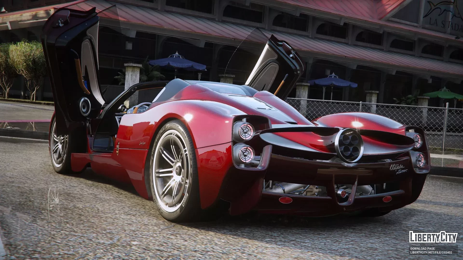 Pagani Utopia Roadster для GTA 5. Передняя часть: Капот с выразительными аэродинамическими выштамповками и фирменными вентиляционными прорезями под...